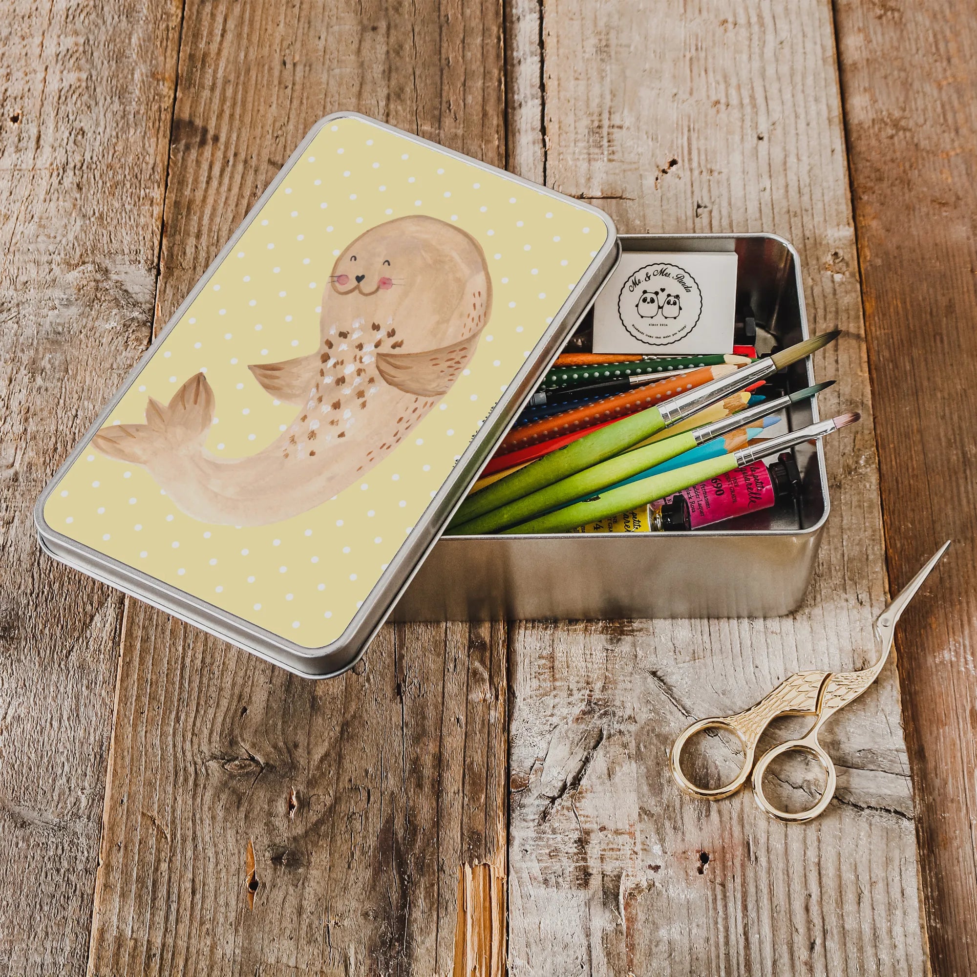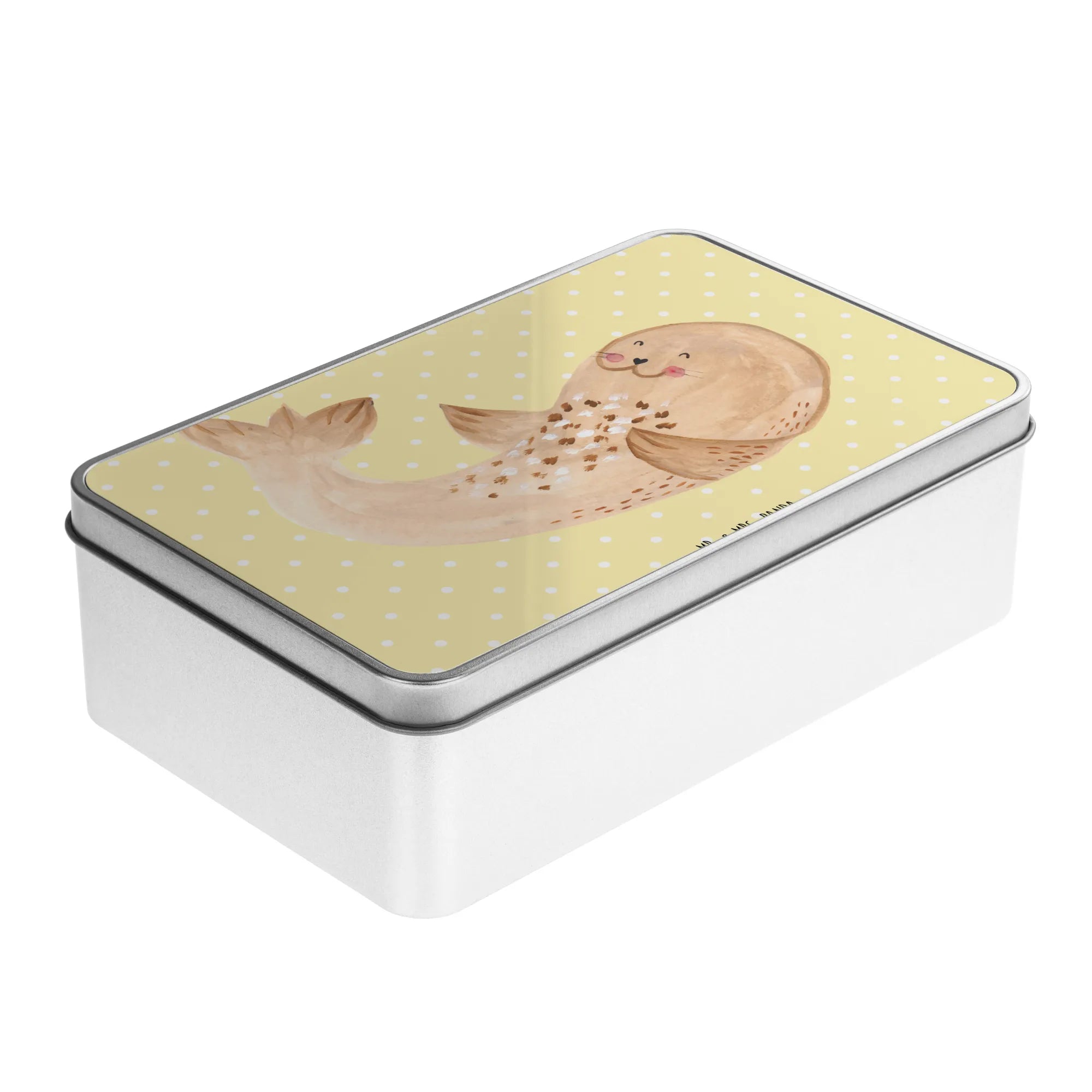 Die wunderschöne Metalldose rechteckig mit dem süßen Motiv einer liegenden Robbe aus der Small World Kollektion von Mr. & Mrs. Panda ist die perfekte Aufbewahrungslösung für alle, die eine Prise gute Laune in ihren Alltag bringen möchten. Egal, ob Du sie als Keksdose verwendest oder um Deine kleinsten Schätze und Erinnerungen sicher aufzubewahren – diese charmante Dose ist stets ein treuer Begleiter.