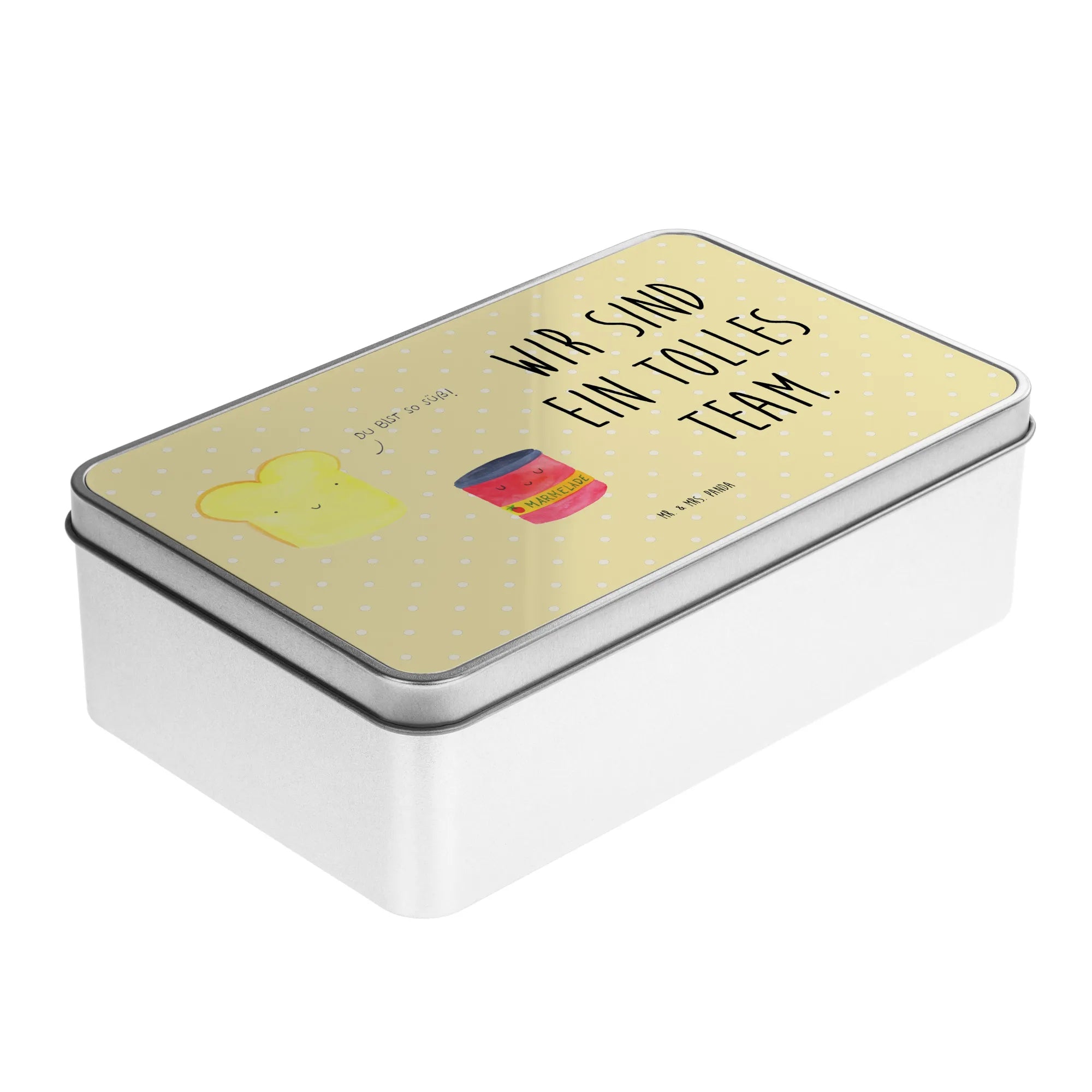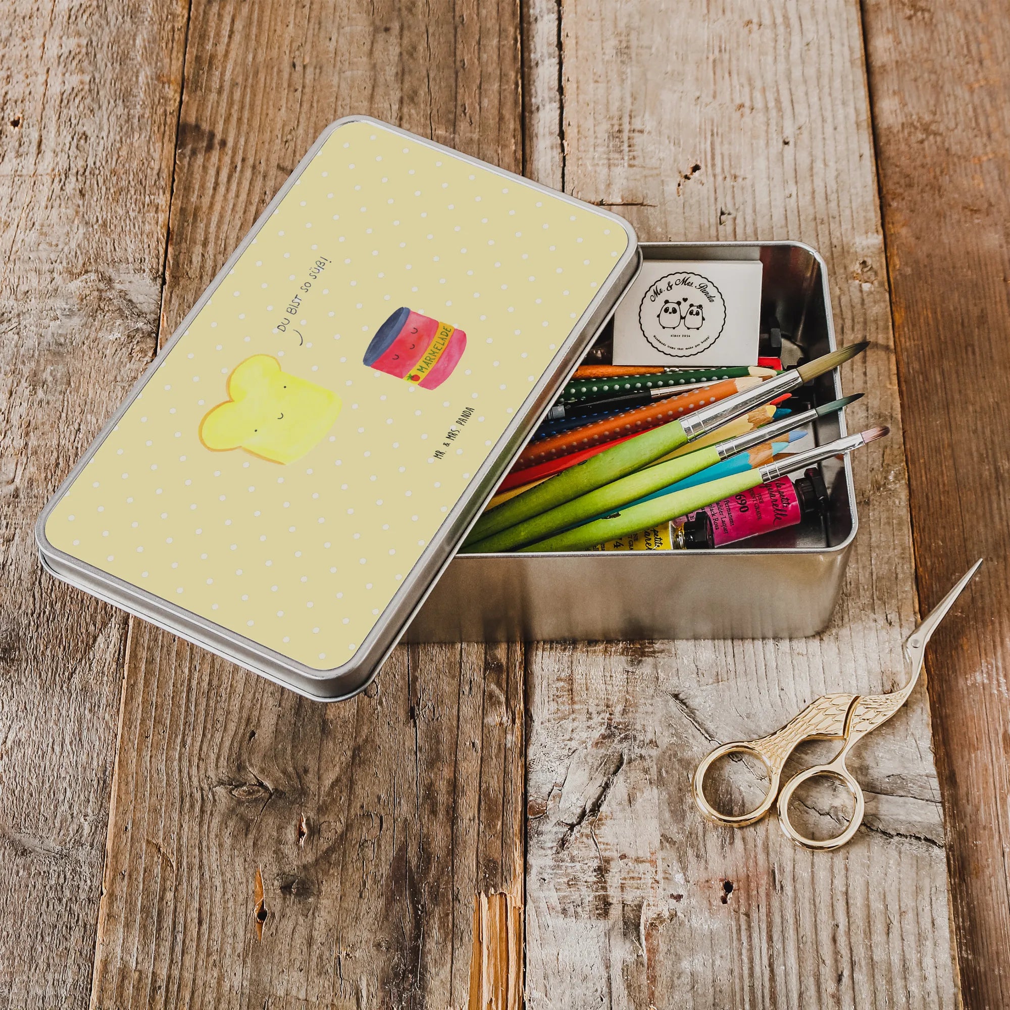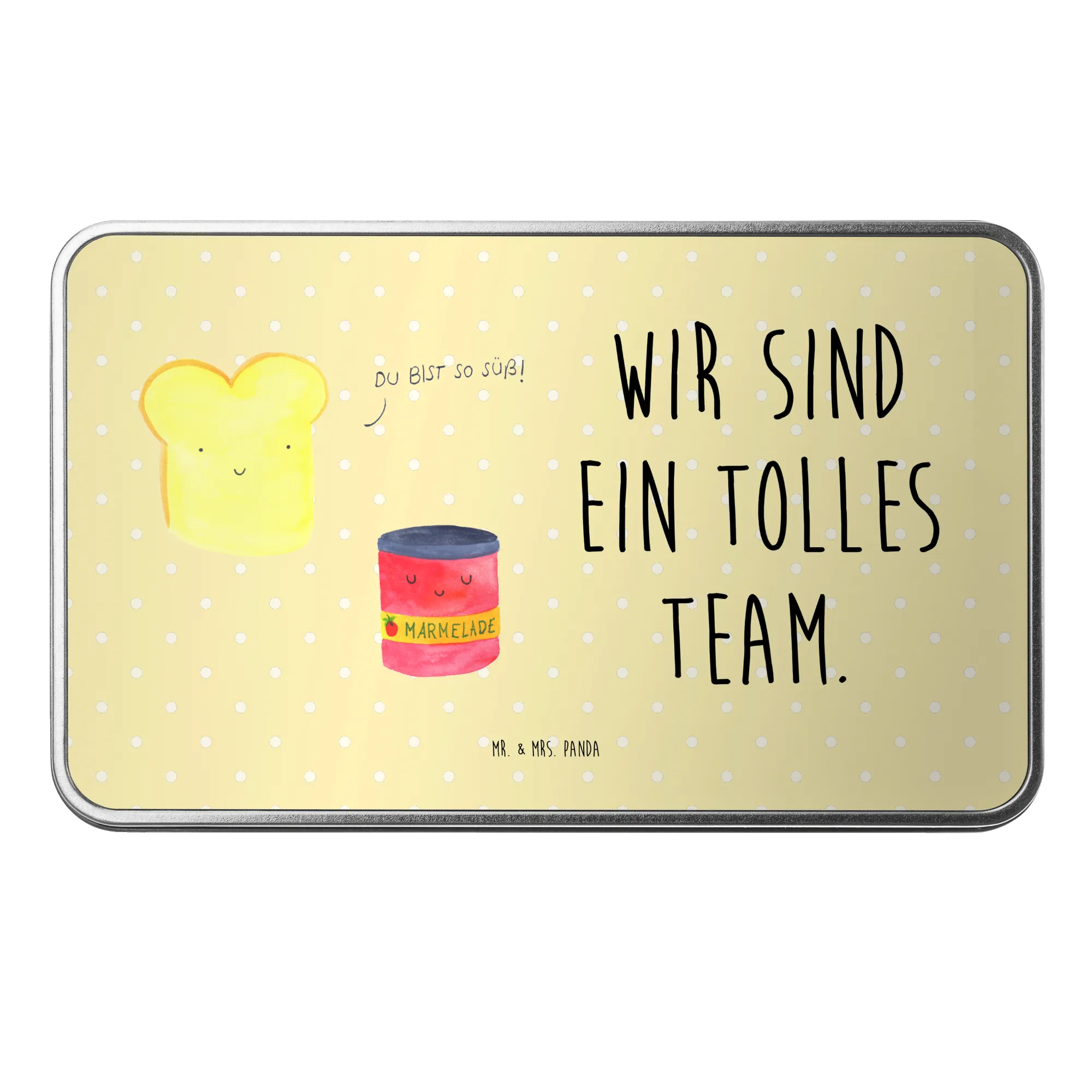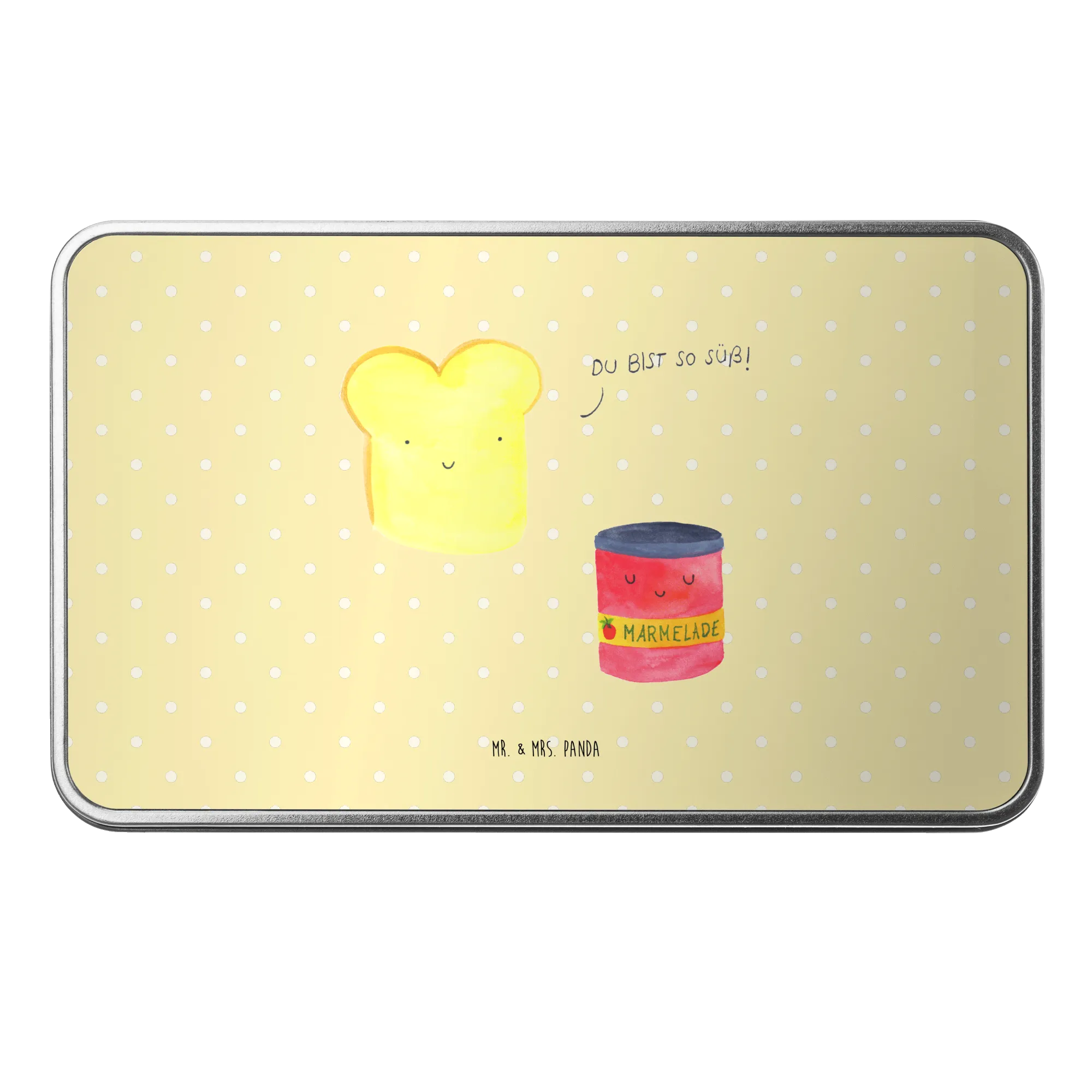 Die wunderschöne rechteckige Metalldose von Mr. & Mrs. Panda ist das perfekte Geschenk für alle, die ihre kleinen Schätze stilvoll aufbewahren möchten! Mit einem bezaubernden Motiv von Toast und Marmelade, die in einander verliebt sind, bringt diese Dose nicht nur Farbe in jede Küche, sondern auch eine gute Portion gute Laune. Ideal zum Aufbewahren von Keksen, kleinen Leckereien oder sogar als nachhaltige Geschenkbox für einen lieben Menschen.
