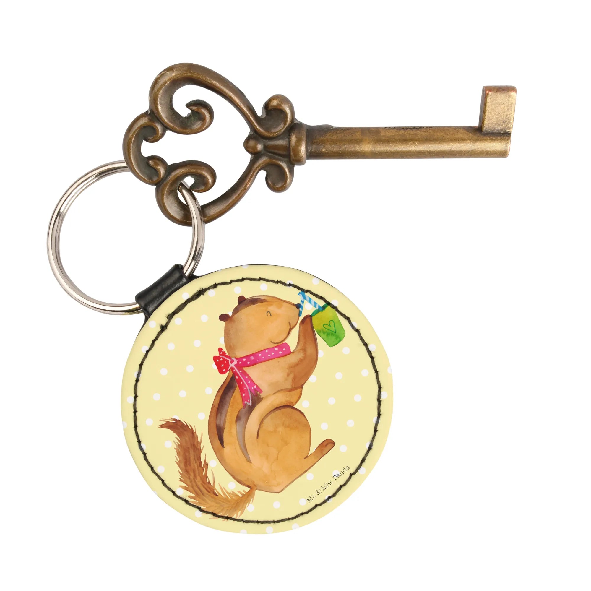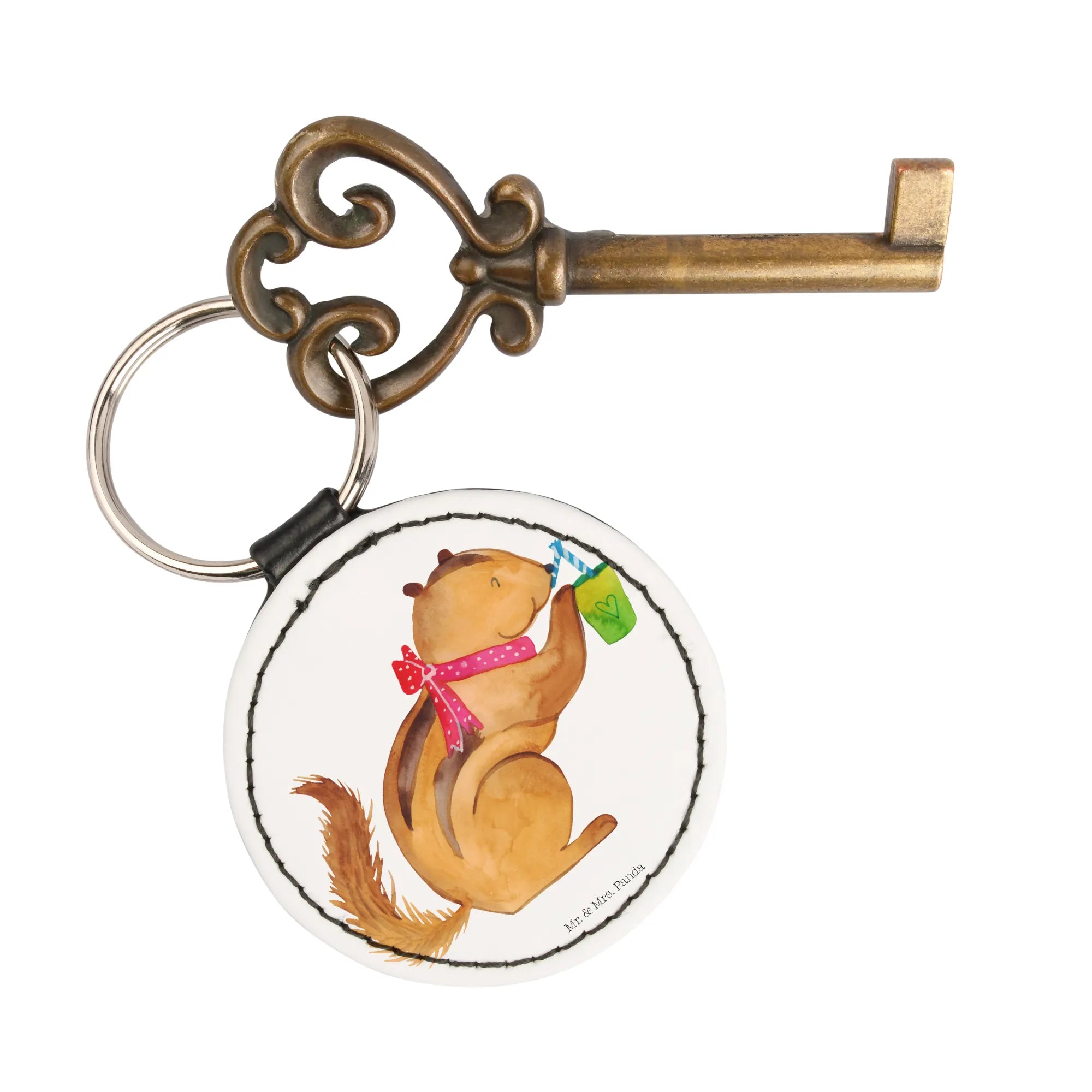 Entdecke den zauberhaften Rund Schlüsselanhänger mit dem niedlichen Eichhörnchen Smoothie aus der besonderen Small World Kollektion von Mr. & Mrs. Panda! Dieser Schlüsselanhänger ist nicht nur ein echter Blickfang, sondern auch der perfekte Glücksbringer oder Schutzengel für jeden Tag.