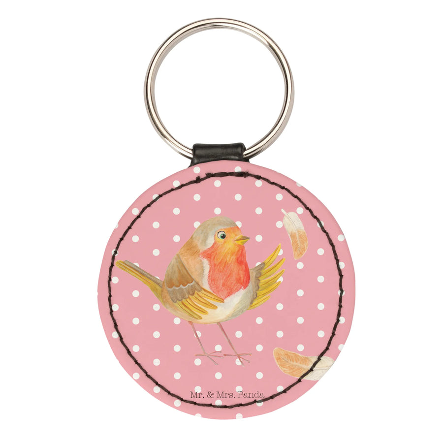 Rund Schlüsselanhänger Rotkehlchen Federn - Rot Pastell