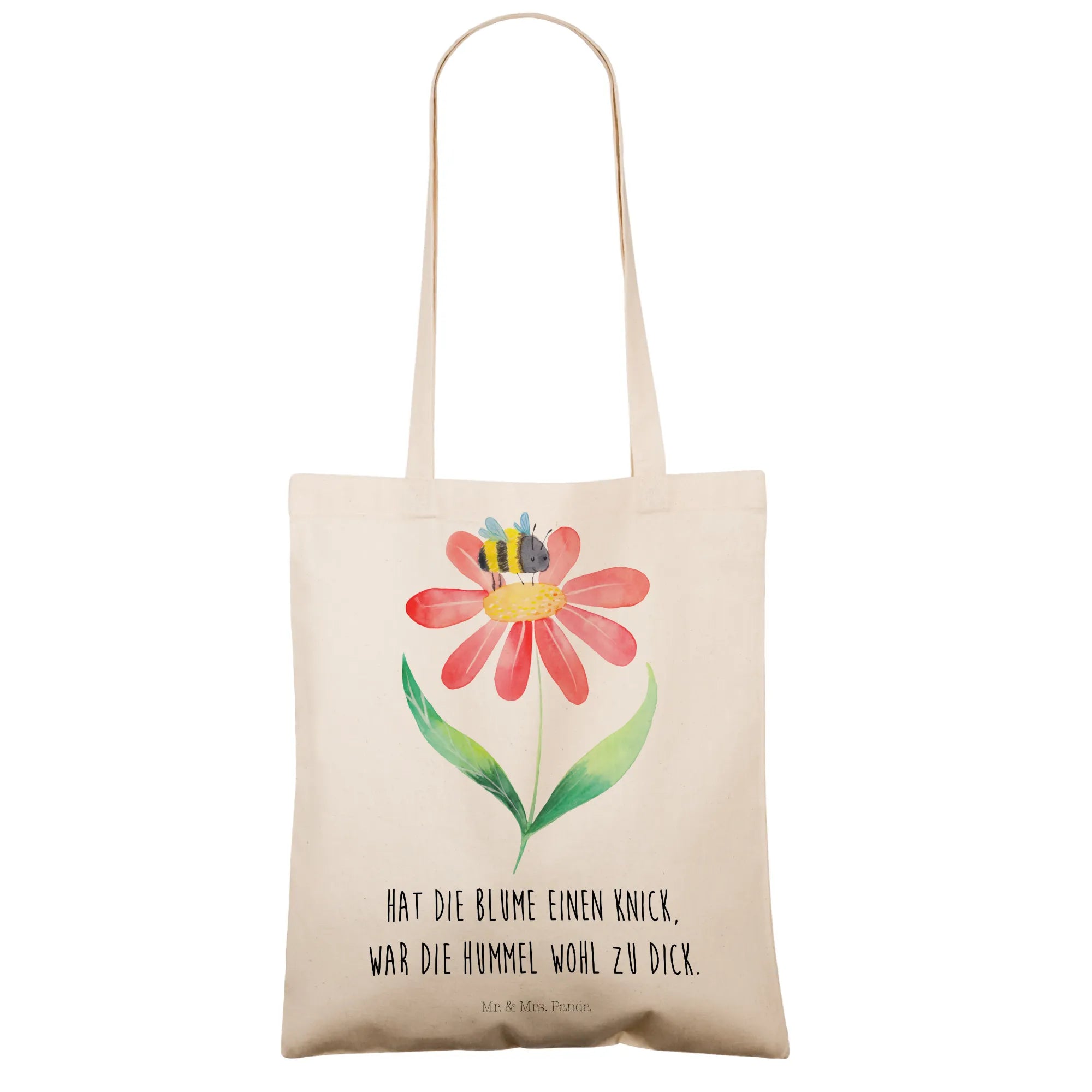 Die süße Hummel, liebevoll von Mrs. Panda per Aquarell gezeichnet, sitzt auf einer zarten Blüte und bringt ein fröhliches Summen in deinen Alltag. Die sanfte Himmelblau-Farbe des Hintergrunds lässt das Motiv leuchten und macht die Tasche zum perfekten Begleiter für City, Strand und Wochenmarkt. 🌼🐝