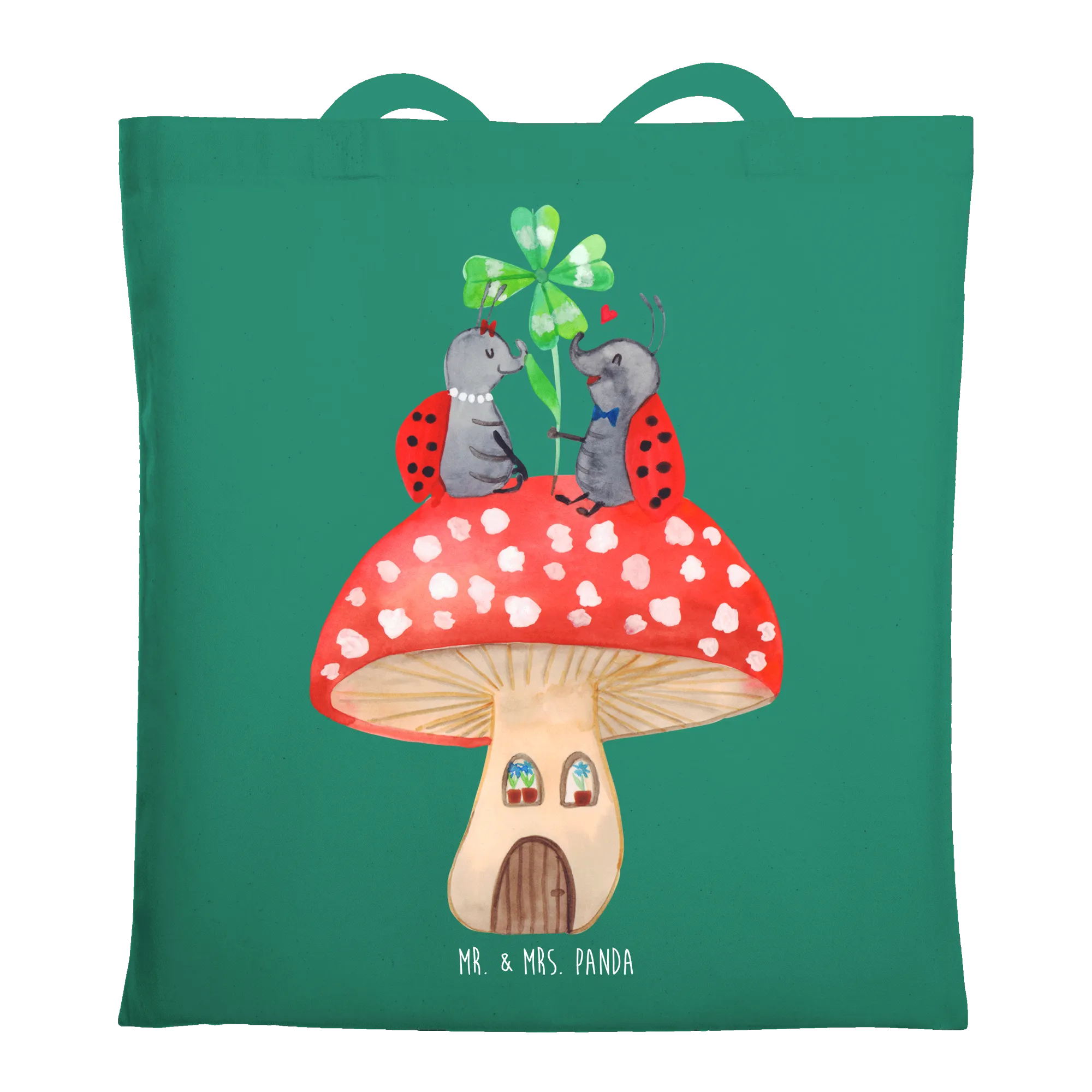 Lass Dich verzaubern von dieser hübschen Tasche aus der Small World Kollektion von Mr. & Mrs. Panda. Das Motiv zeigt zwei verliebte Marienkäfer, die sich auf einem rot-weiß gefleckten Fliegenpilz gegenübersitzen. Eine kleine Szene voller Wärme, die überall für gute Laune sorgt – ob als Einkaufstasche, Stofftasche oder Strandtasche.