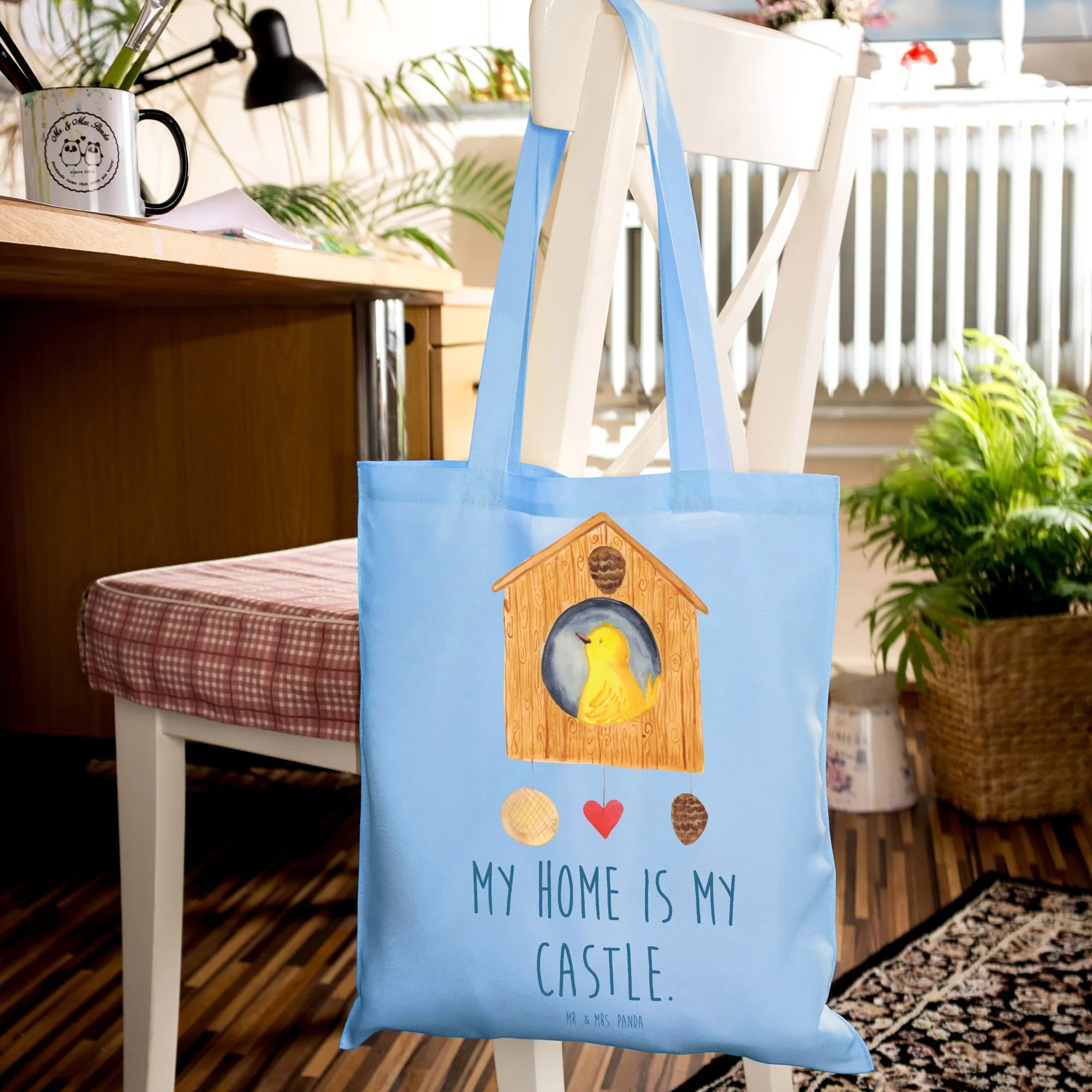 Diese bezaubernde Tragetasche aus der Small World Kollektion zeigt ein süßes Vogelhaus mit einem zufriedenen gelben Vogel und dem liebevollen Spruch „My home is my castle.“ Das liebevoll in Aquarell gestaltete Motiv bringt Wärme und gute Laune in deinen Alltag.