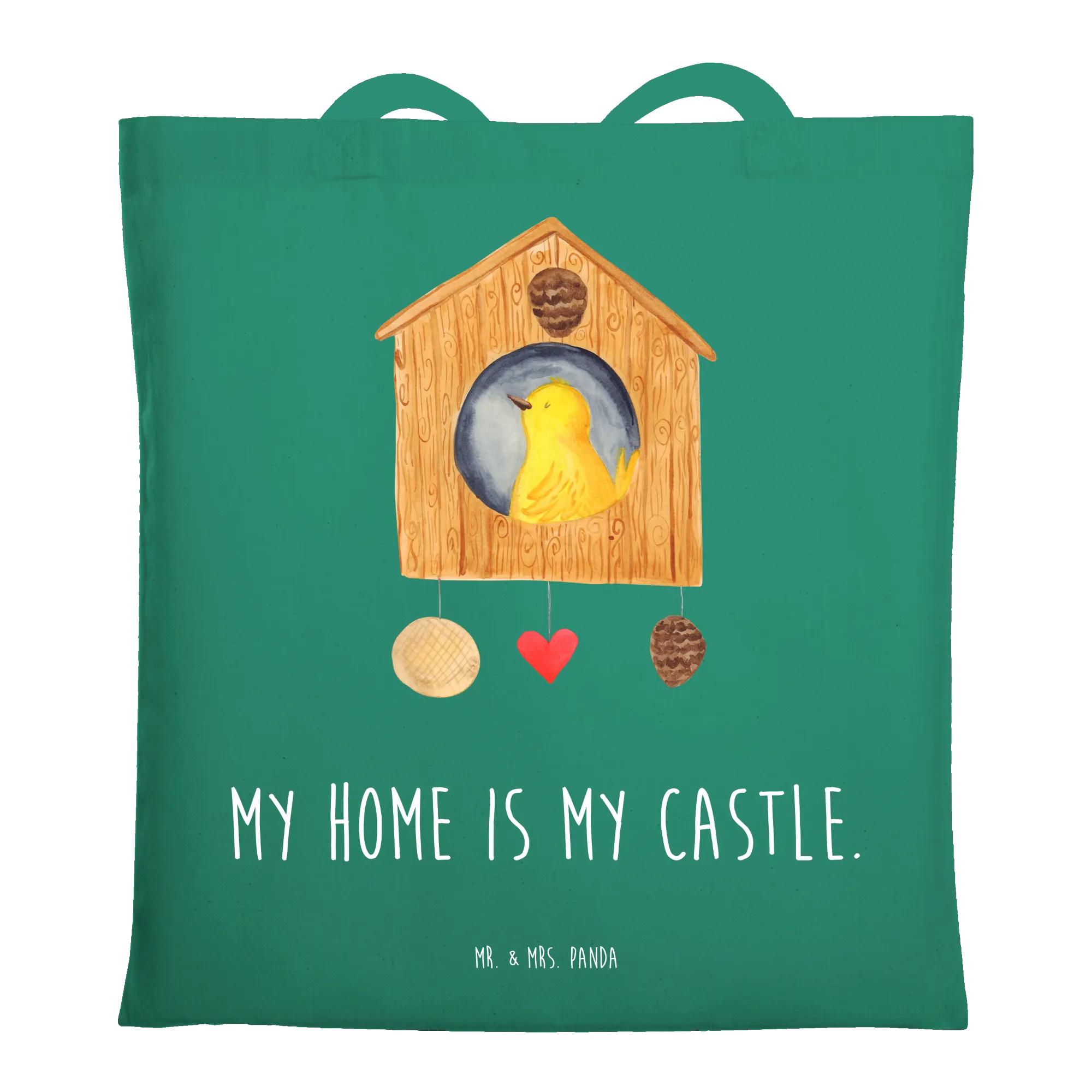 Tragetasche Vogel Haus - mit Spruch - Mint