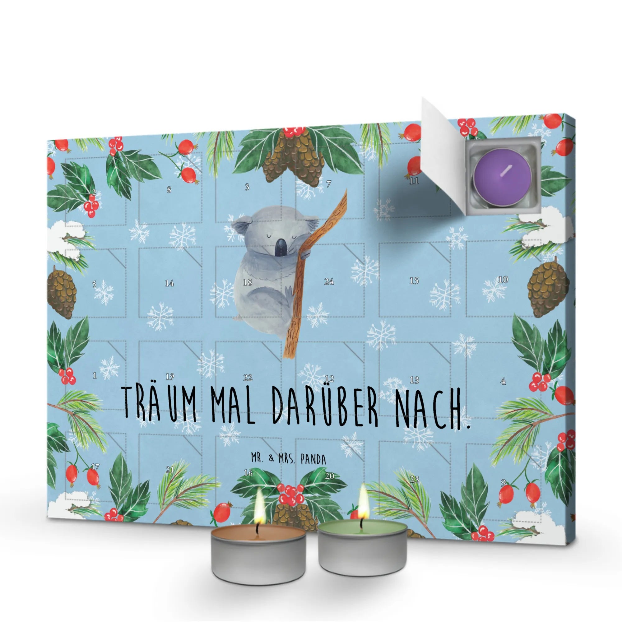 Entdecke den zauberhaften Duftkerzen Adventskalender mit dem niedlichen Koalabär-Motiv aus der Small World Kollektion von Mr. & Mrs. Panda! Dieser wunderbare Adventskalender bringt dich in Weihnachtsstimmung und sorgt für eine entspannende Atmosphäre in deinem Zuhause.