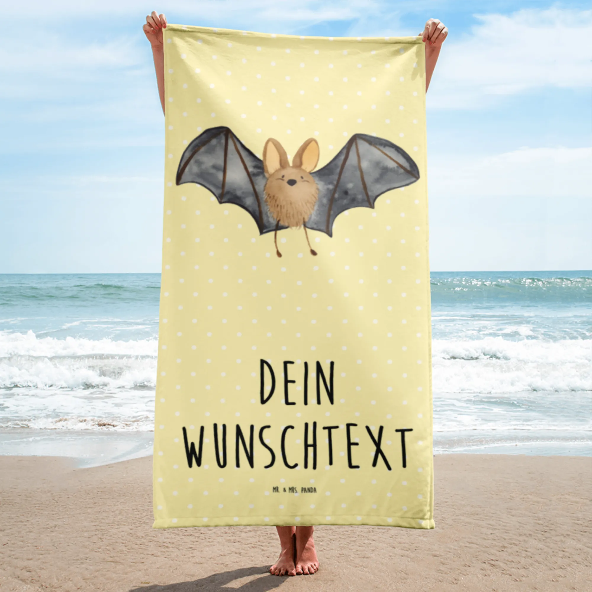 XXL Badehandtuch mit Namen Fledermaus Flügel