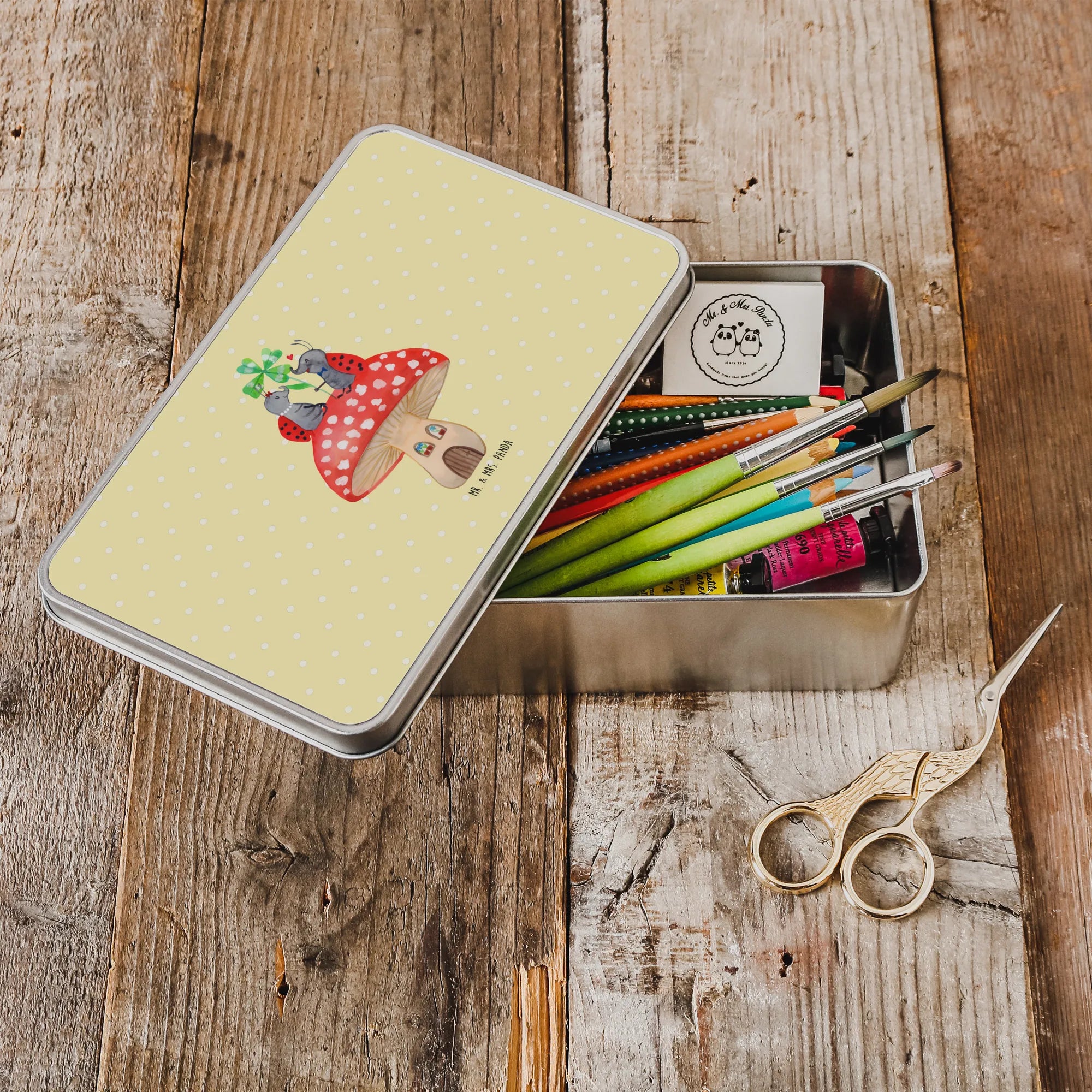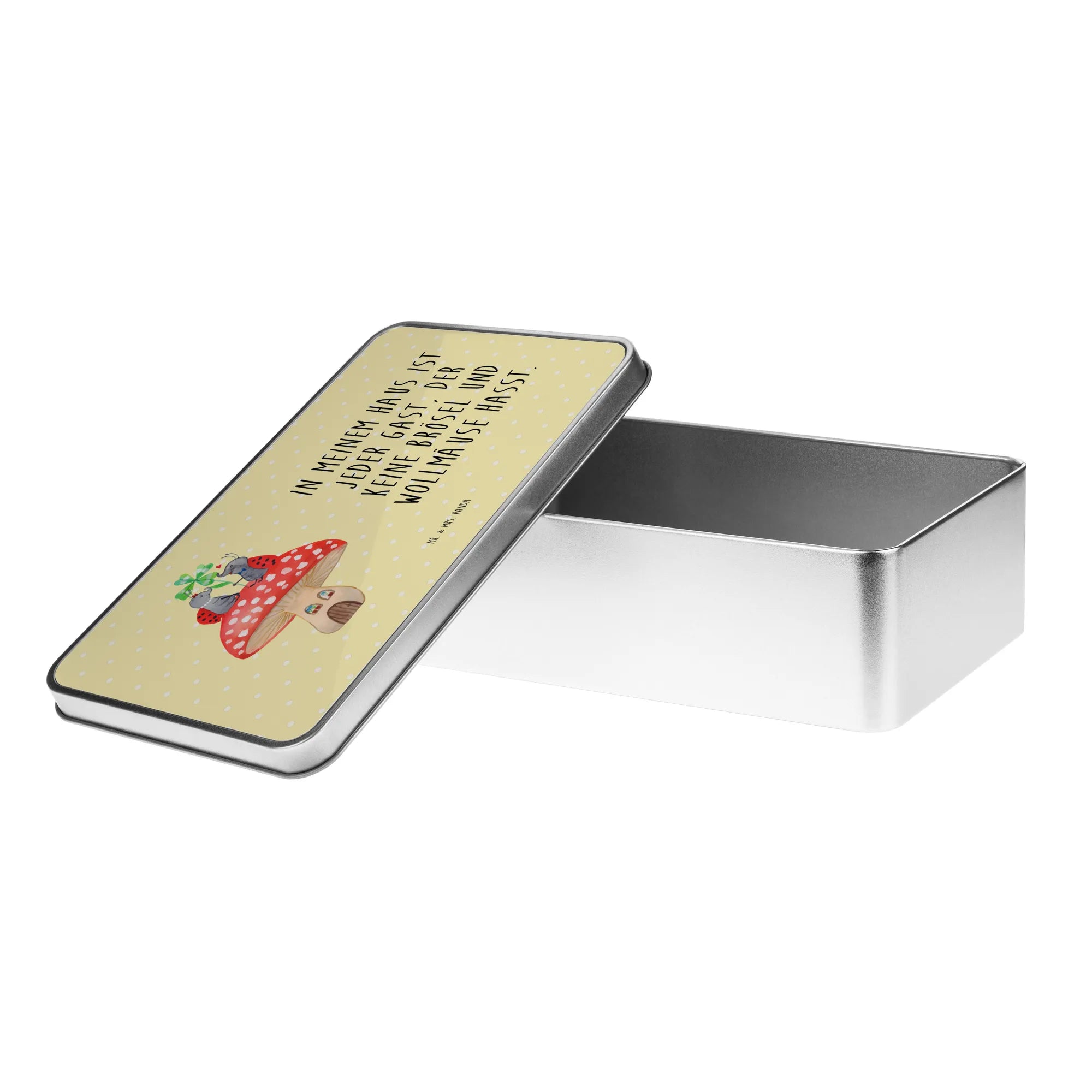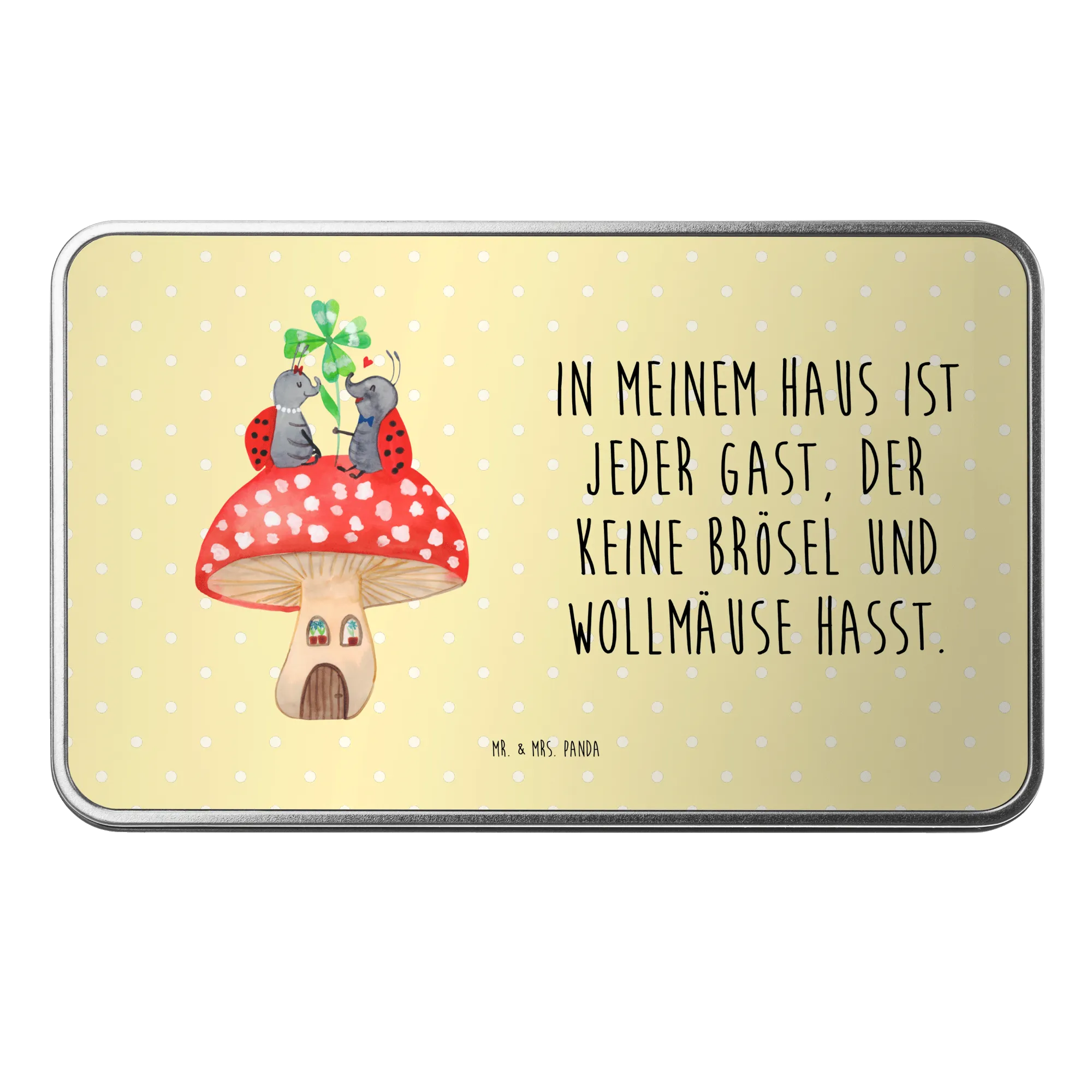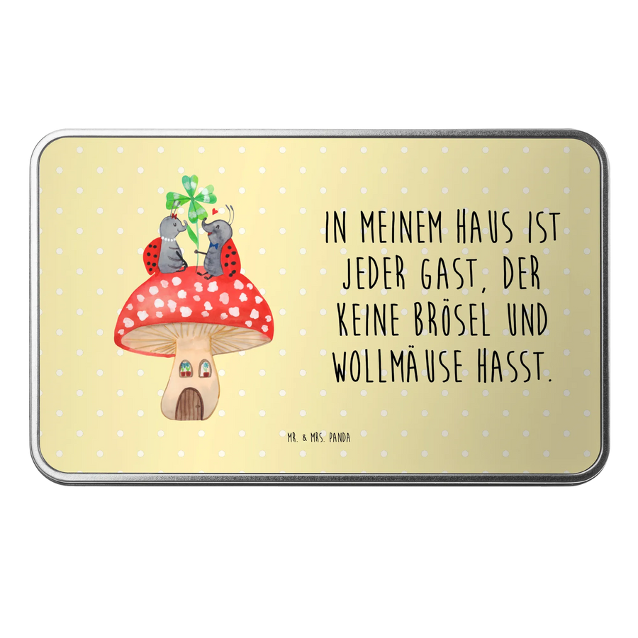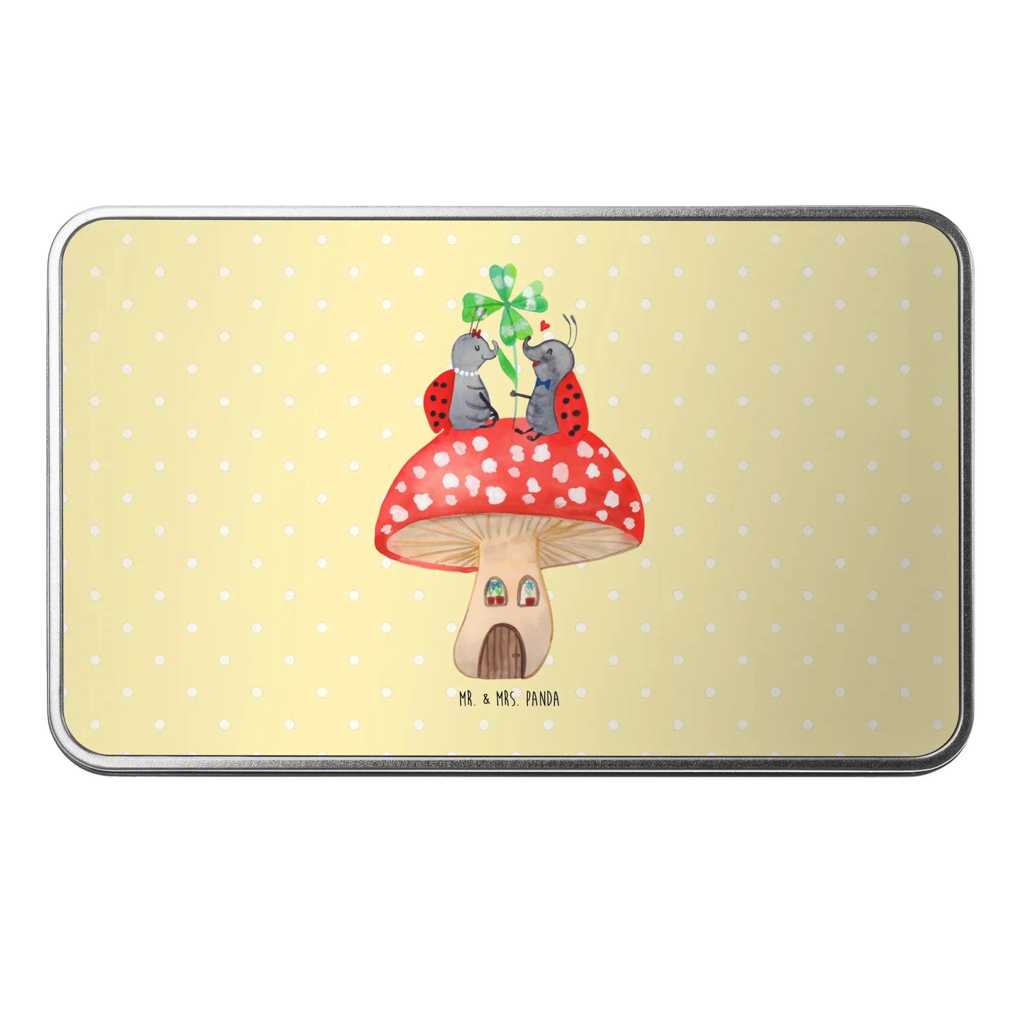 Entdecke die zauberhafte Metalldose rechteckig von Mr. & Mrs. Panda mit dem wundervollen Motiv "Marienkäfer Paar Fliegenpilz"! Diese bezaubernde Dose ist mehr als nur ein Behälter; sie ist ein liebevolles Accessoire für dein Zuhause.