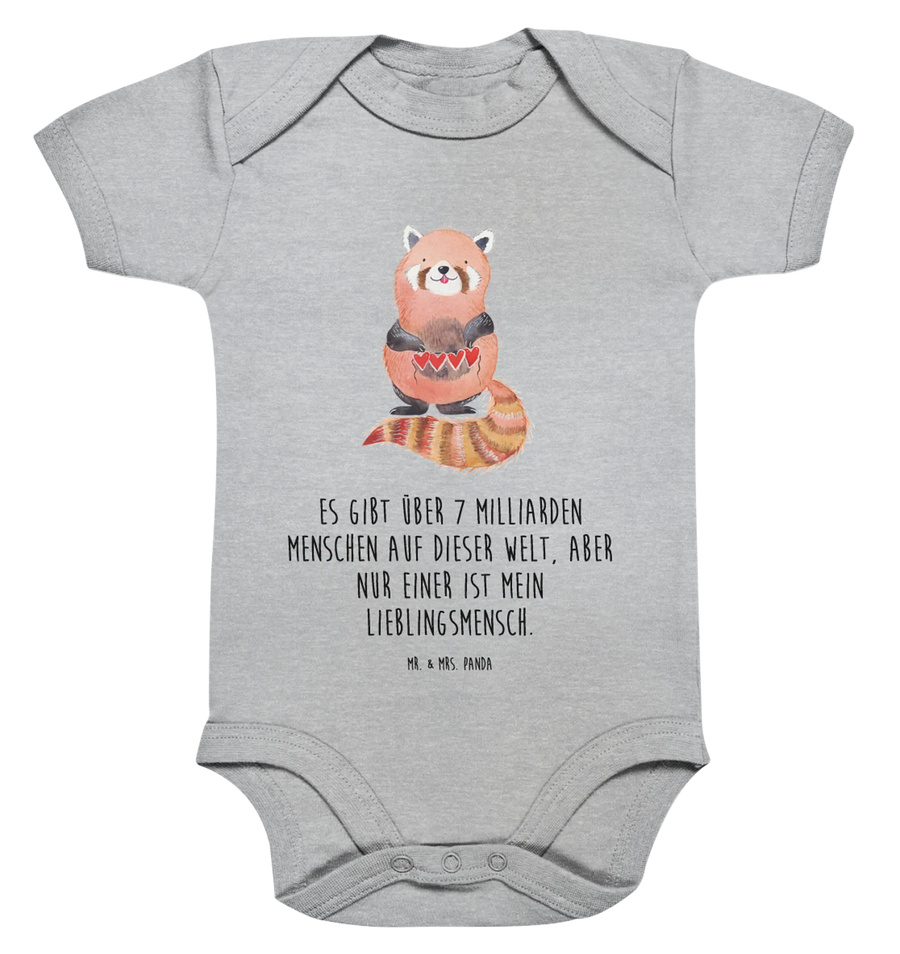 Organic Baby Body Roter Panda - 1. - 3. Monat - mit Spruch - Heather Grey