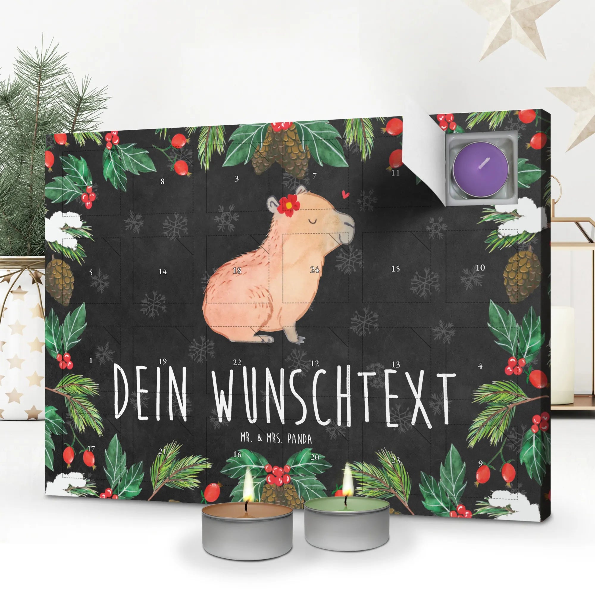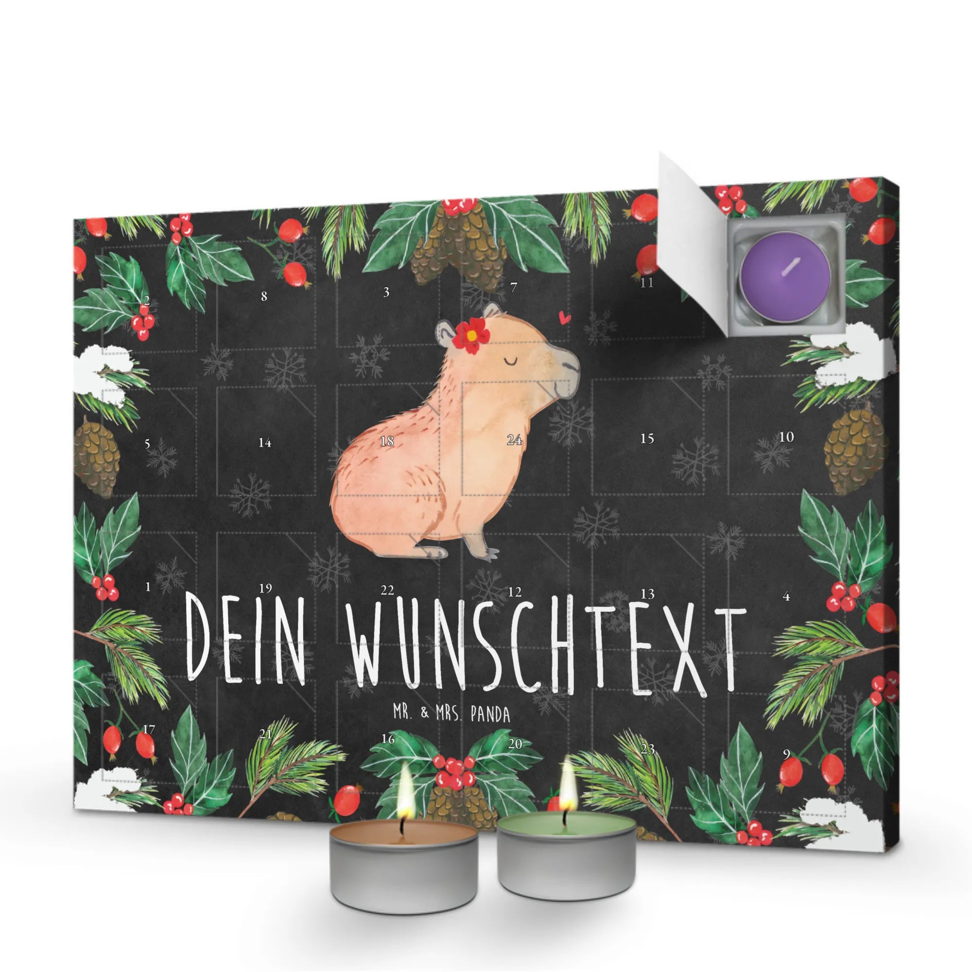 Personalisierter Duftkerzen Adventskalender Capybara Blume – Mr. & Mrs. Panda