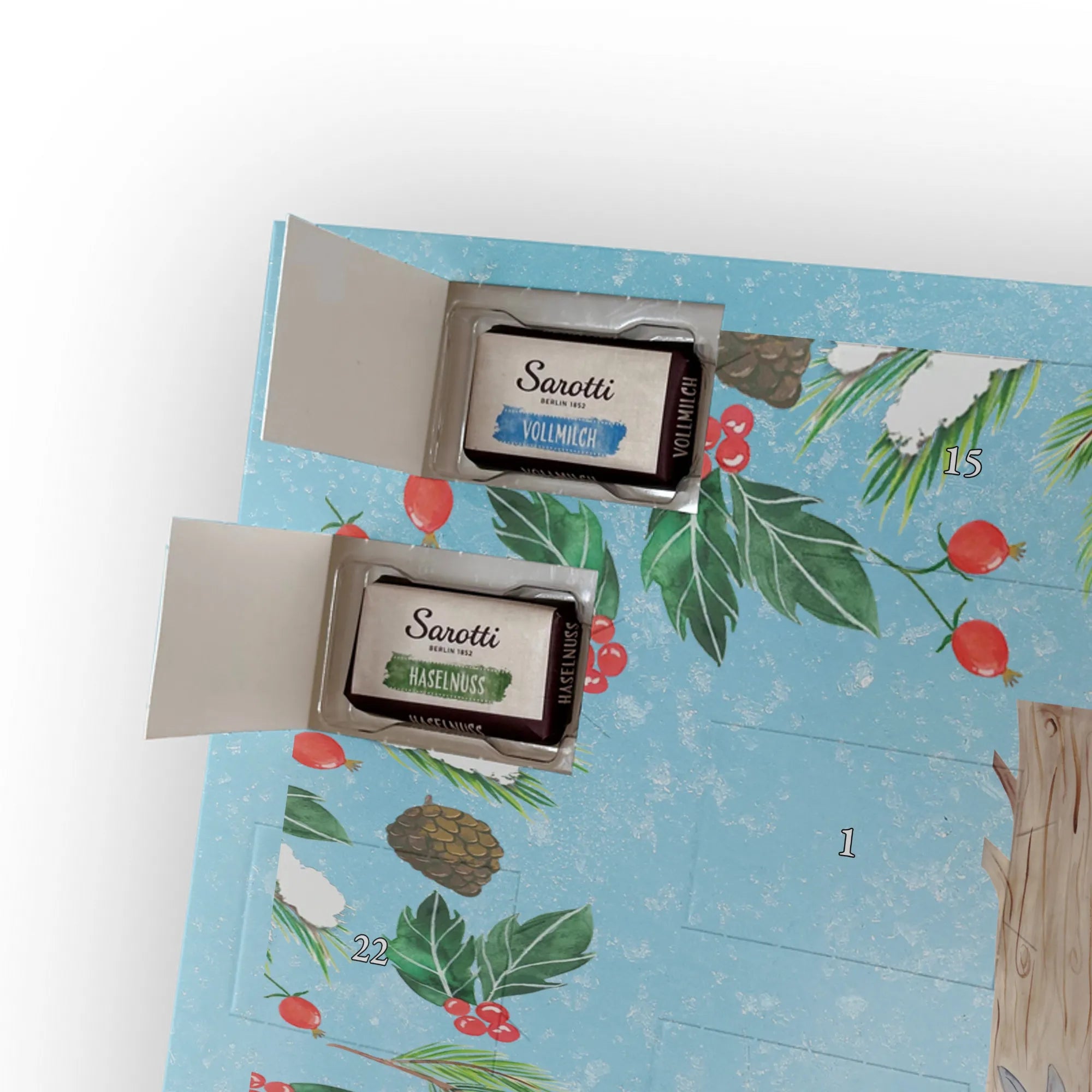 🐼 Personalisierter Schoko Adventskalender, seidenmatt und mit Ritter Sport Schokowürfeln.