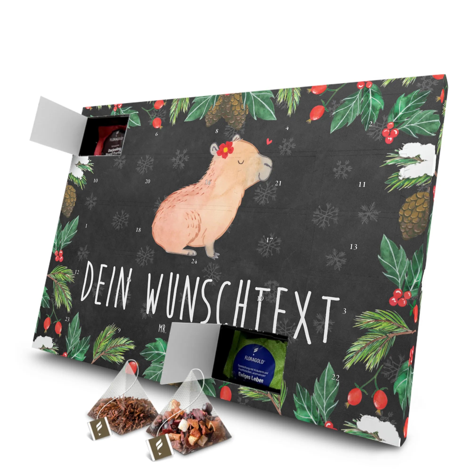 Der Personalisierte Tee Adventskalender mit dem zauberhaften Motiv Capybara Blume aus der Small World Kollektion von Mr. & Mrs. Panda ist das perfekte Geschenk für Teeliebhaber und alle, die die kleinen Freuden des Lebens schätzen. Jedes Jahr freuen sich viele Menschen auf die besinnliche Adventszeit, und mit diesem Kalender bringst du die Vorfreude auf Weihnachten auf eine ganz besondere Art und Weise in dein Zuhause.