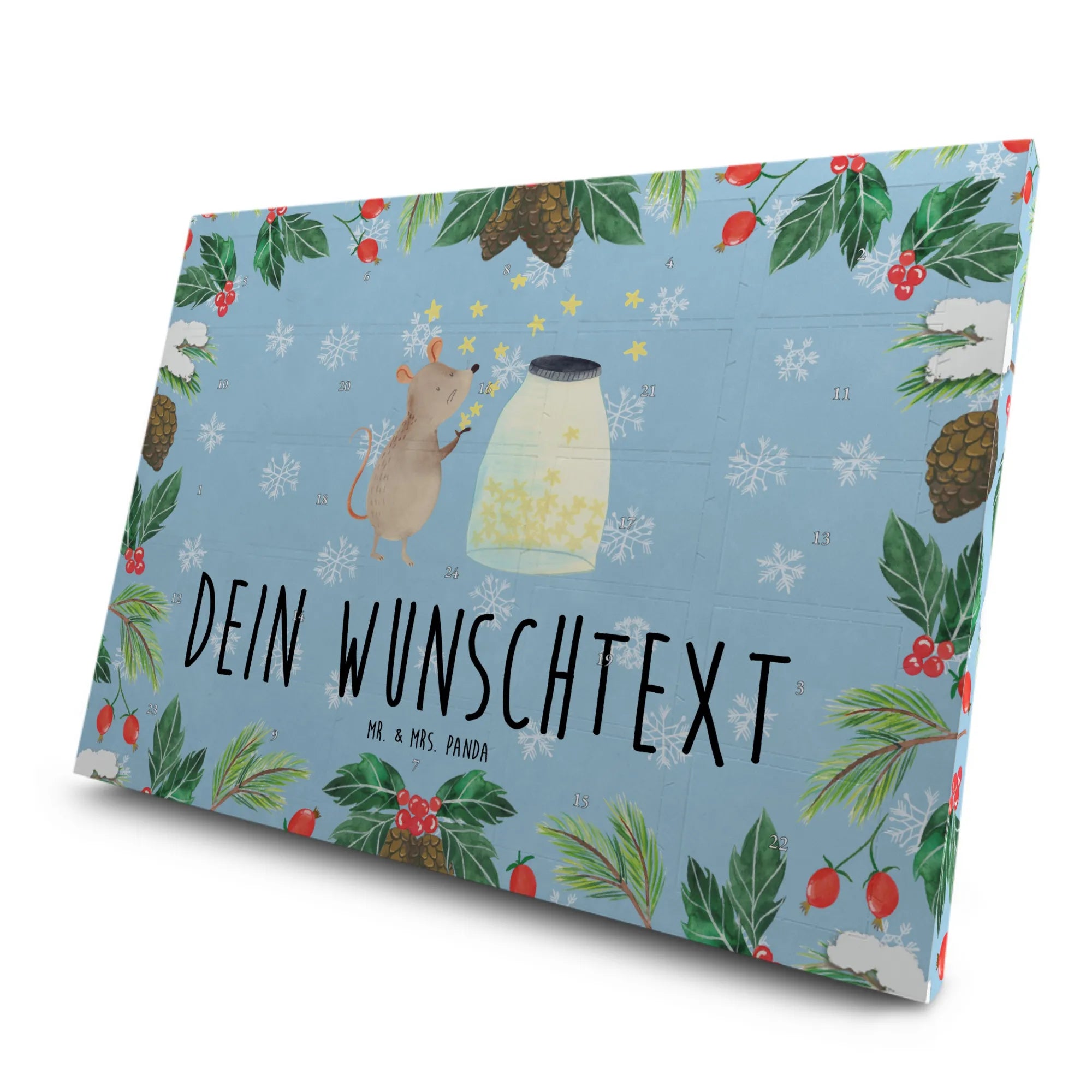 Mach die Vorweihnachtszeit unvergesslich mit dem personalisierten Tee Adventskalender von Mr. & Mrs. Panda! Mit dem zauberhaften Motiv "Maus Sterne" ist dieser Kalender die perfekte Geschenkidee für kleine und große Teeliebhaber.