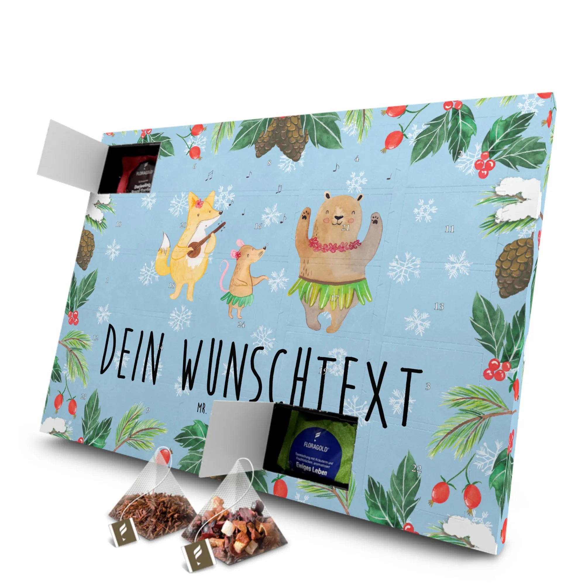 Personalisierter Tee Adventskalender Waldtiere Aloha - Eisblau
