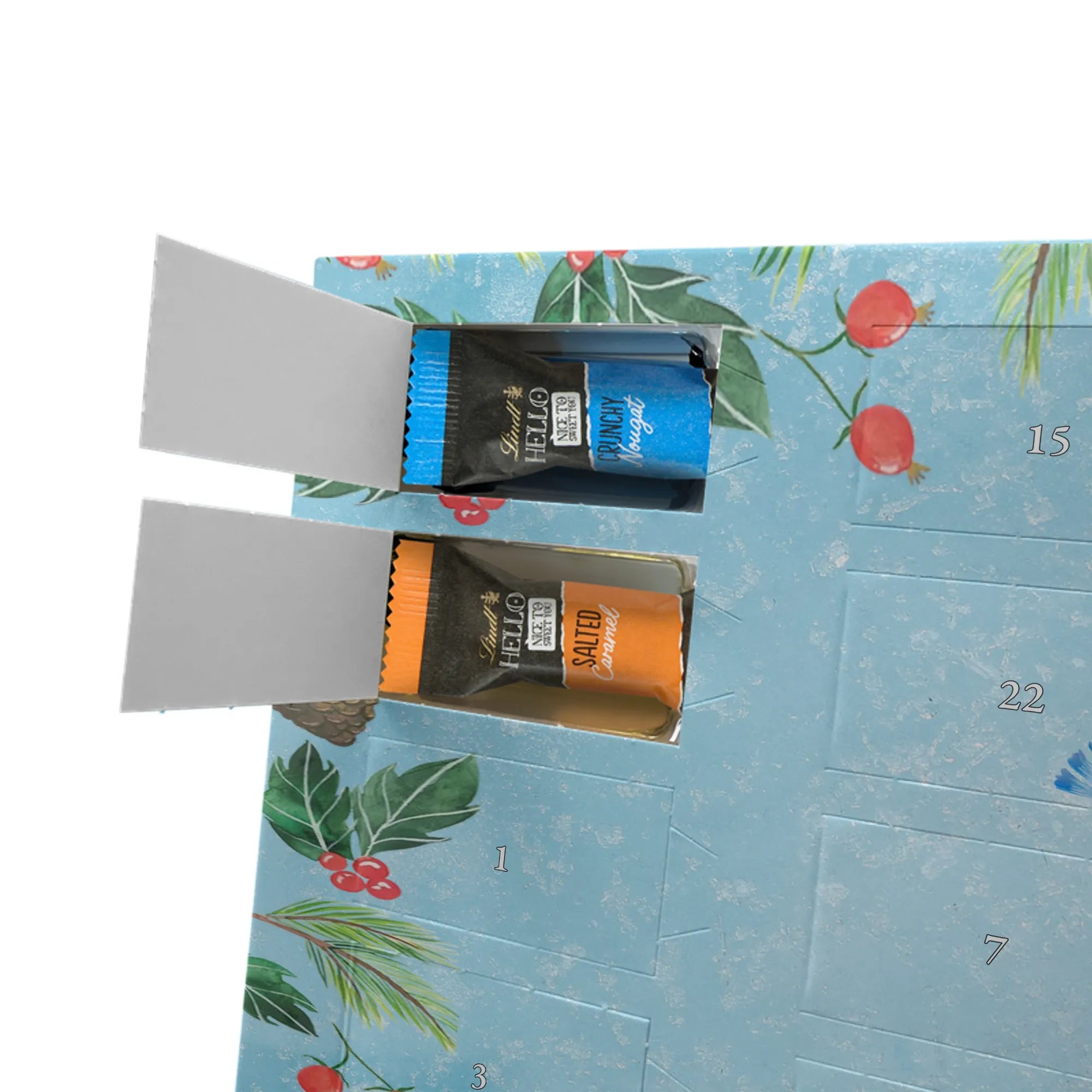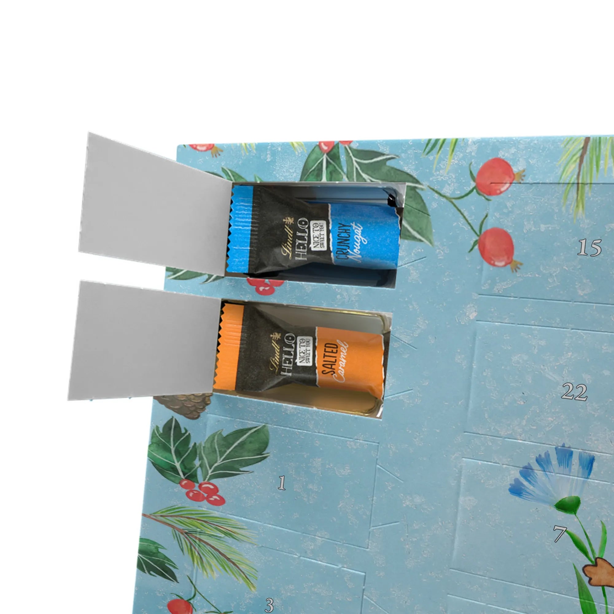 Unser Adventskalender mit Schokolade von Mr. & Mrs. Panda ist die perfekte Mischung aus süßem Genuss und hübschem Design. Bedruckt mit liebevollen Motiven und kurzen Sprüchen, bringt dieser Adventskalender Freude in jeden Raum. Er ist nicht personalisierbar, überzeugt jedoch durch eine brillante Druckqualität und eine seidenmatte Oberflächenveredelung. Die Seitenflächen sind ebenfalls bedruckt, was dem Kalender ein rundes, hochwertiges Erscheinungsbild verleiht. Maße: 325 mm x 225 mm x 27 mm. Die Besonderheit: Du kannst ihn sowohl aufhängen als auch aufstellen – flexibel je nach Platz und Stimmung. Gefüllt mit Lindt Hello Schokolade: 24 einzeln verpackte Mini Sticks in vier verführerischen Sorten – Karamell-Schokoladenkuchen, Kekse, Knuspriger Nougat und Erdbeer-Cheesecake. Zutaten umfassen u. a. Zucker, Kakaomasse, Vollmilchpulver, Palmöl und Haselnüsse; Allergene: Milcheiweiß, Milchzucker, Soja, Weizen, Haselnüsse; kann Mandeln und andere Schalenfrüchte enthalten. Ideal zum Verschenken oder selbst Genießen – jeden Tag ein kleines Highlight in der Vorweihnachtszeit.