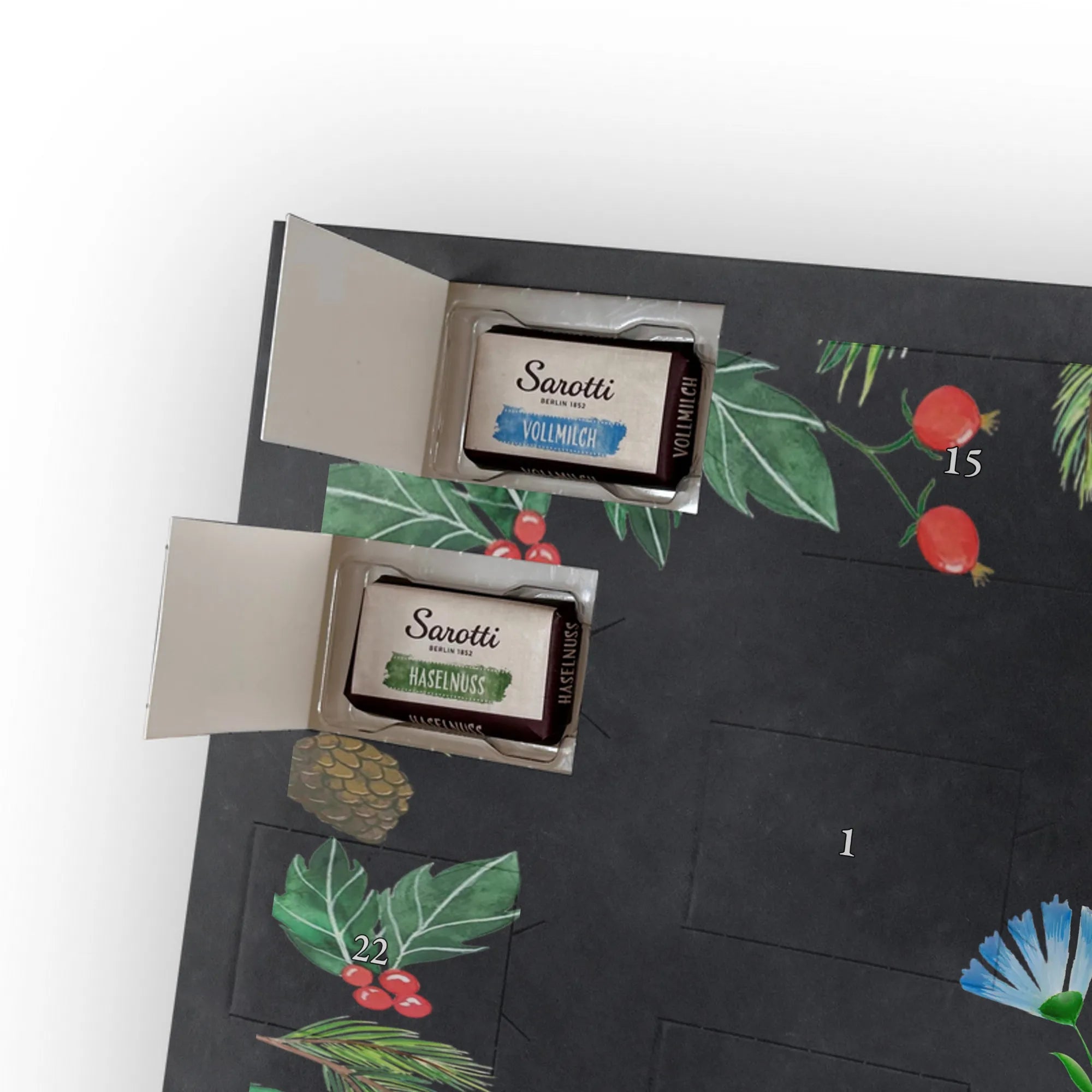 🐼 Schoko-Adventskalender: Liebevolles Design, seidenmatt, brillanter Druck – ein Hingucker.