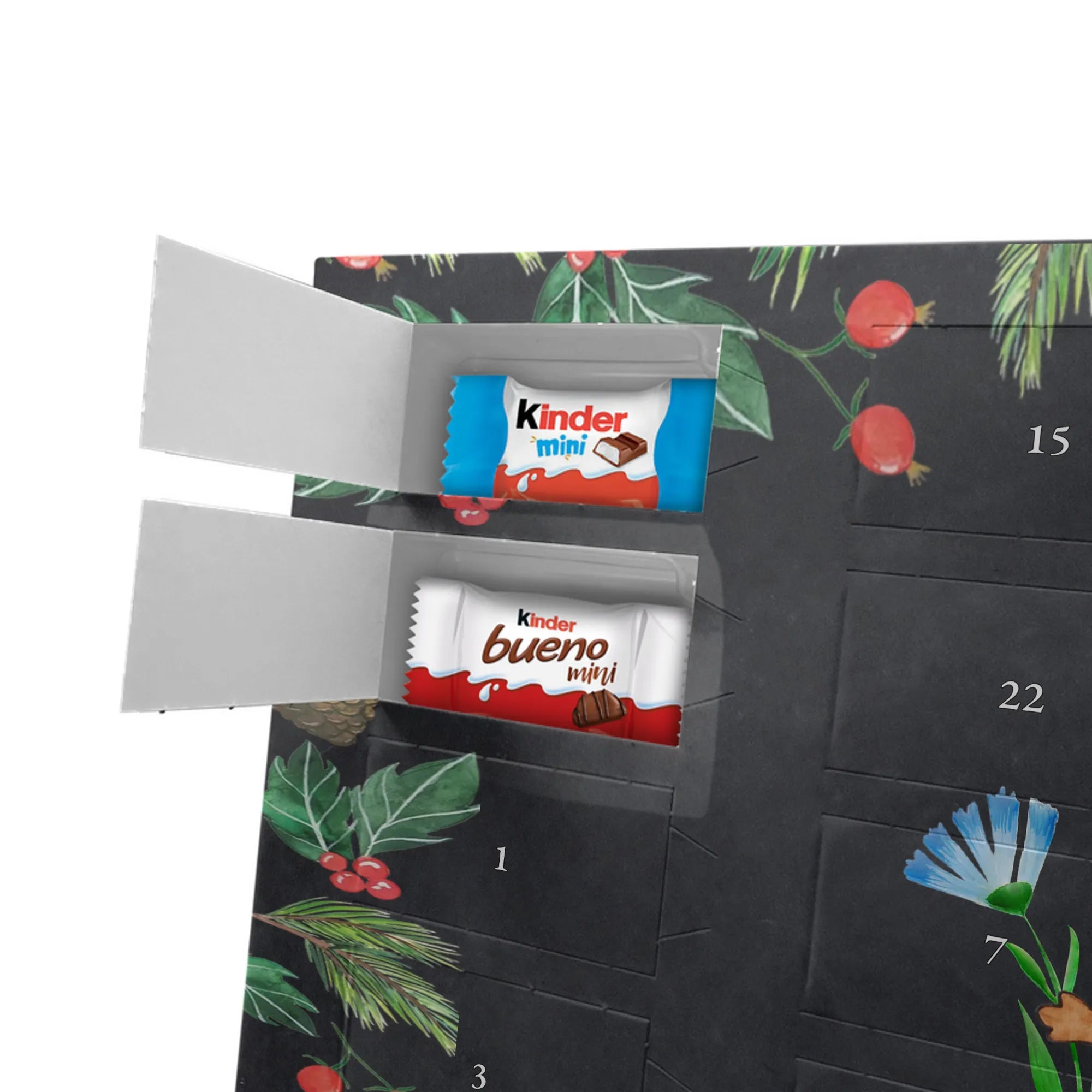 Entdecke unseren liebevoll gestalteten Schoko-Adventskalender von Mr. & Mrs. Panda – eine zauberhafte Idee, um die Tage bis Weihnachten zu versüßen. Der Kalender ist bedruckt mit wunderschönen Motiven & Sprüchen von Mr. & Mrs. Panda und ist nicht personalisierbar. Wir setzen auf brillante Druckqualität mit seidenmatter Oberflächenveredelung und bedruckte Seitenflächen für ein rundum schönes Erscheinungsbild. Maße: 355 mm x 245 mm x 11 mm. Die clevere Bauweise erlaubt es, den Kalender entweder aufzuhängen oder freistehend aufzustellen – so bist du flexibel bei der Dekoration. Gefüllt mit Markenname Schokolade: Adventskalender gefüllt mit kinder® Schokolade. Inhalt: kinder® Schoko-Bons, kinder® Bueno mini und kinder® Schokolade mini. Jeder Tag bringt eine kleine Freude und eignet sich perfekt als Geschenk oder als dekoratives Highlight in deinem Zuhause. Die stabile Verarbeitung sorgt dafür, dass der Kalender die ganze Adventszeit über Freude bereitet. Hol dir diesen Schoko-Adventskalender und lade die Vorweihnachtszeit mit süßen Überraschungen auf!