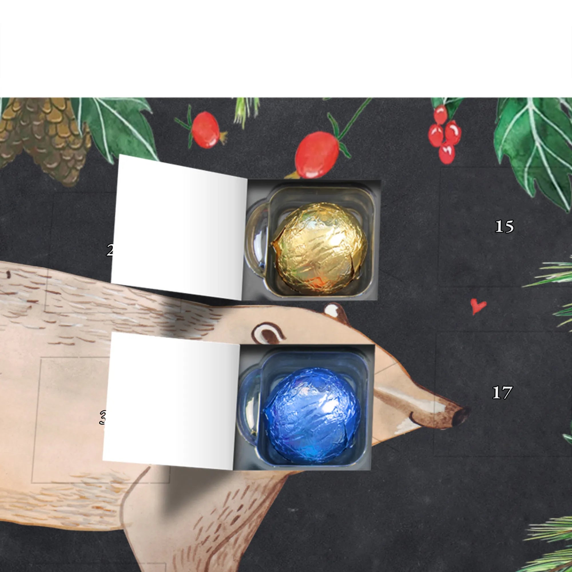 Wunderschöner Adventskalender Schokolade von Mr. & Mrs. Panda – die perfekte Mischung aus Charme und Genuss. Unser Adventskalender Schokolade ist liebevoll gestaltet und bedruckt mit wunderschönen Motiven & Sprüchen von Mr. & Mrs. Panda, die jede Adventszeit verschönern. Der Kalender ist nicht personalisierbar, aber dafür mit viel Liebe zum Detail produziert. Er besticht durch brillante Druckqualität mit seidenmatter Oberflächenveredelung und bedruckte Seitenflächen, die für eine elegante Optik sorgen. Maße: 233 mm x 178 mm x 24 mm. Durch seine stabile Form kannst du ihn aufstellen oder an die Wand hängen – Besonderheit: kann aufgehängt oder aufgestellt werden. Gefüllt mit MARKENNAMEN Schokolade und gefüllt mit leckeren Schokoladenkugeln, bietet er jeden Tag eine leckere Überraschung. Bitte beachte die besonderen Hinweise: (Kann Spuren von Haselnüssen, Mandeln, Gluten und Soja enthalten!), kühl und trocken lagern. Ob als kleines Geschenk, Tischdeko oder Adventsüberraschung für Kinder und Erwachsene – dieser Kalender bringt ein Lächeln in die Vorweihnachtszeit. Viel Spaß beim täglichen Türchenöffnen wünscht dir Mr. & Mrs. Panda!