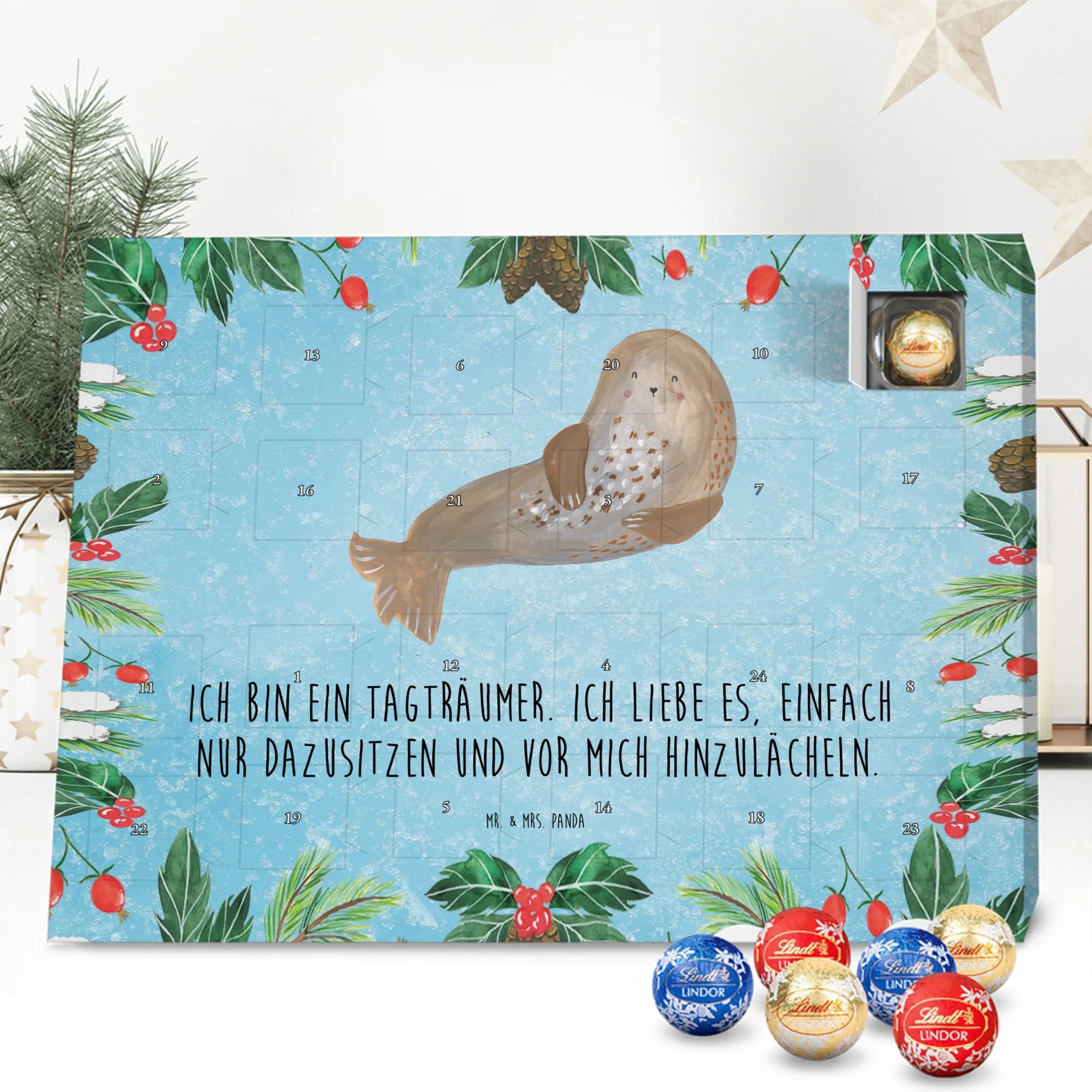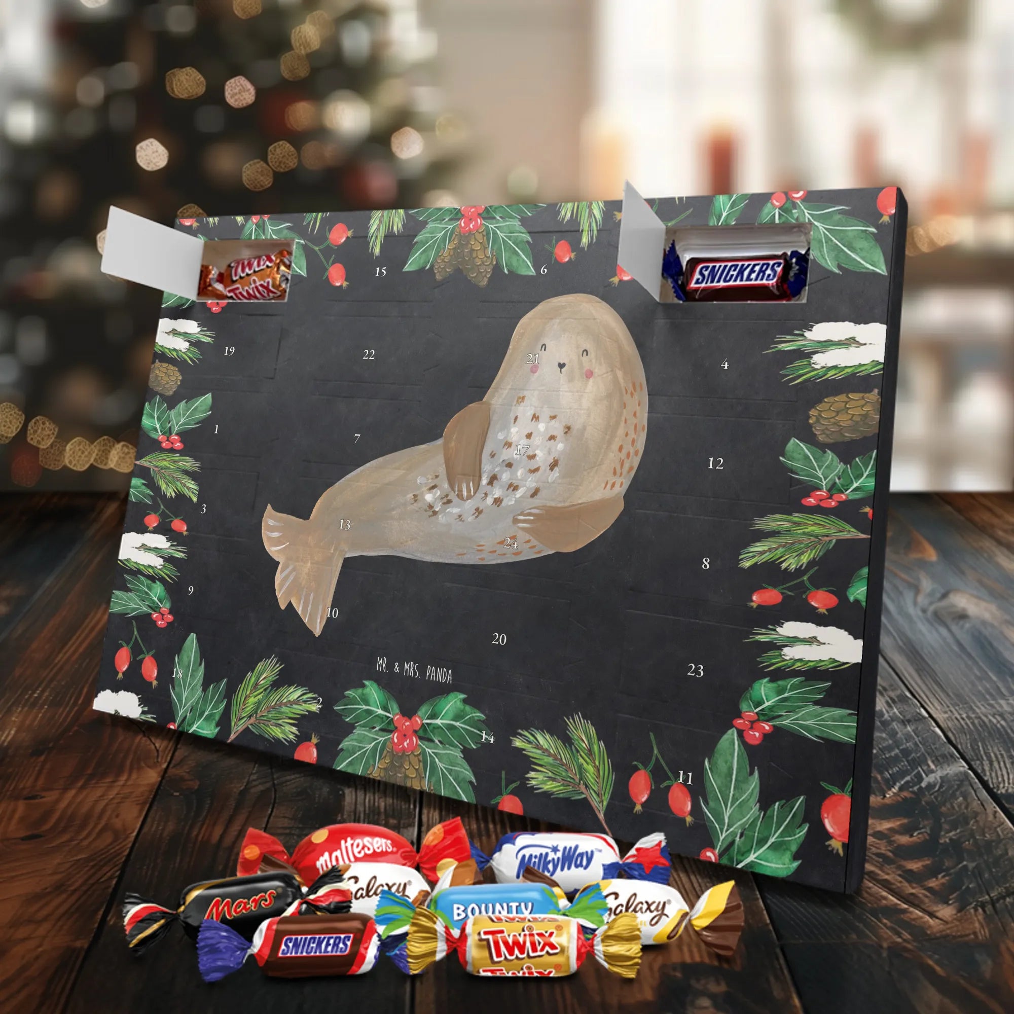 Weihnachtskalender Schokolade Robbe Lachen - Classic - mit Spruch - Eisblau