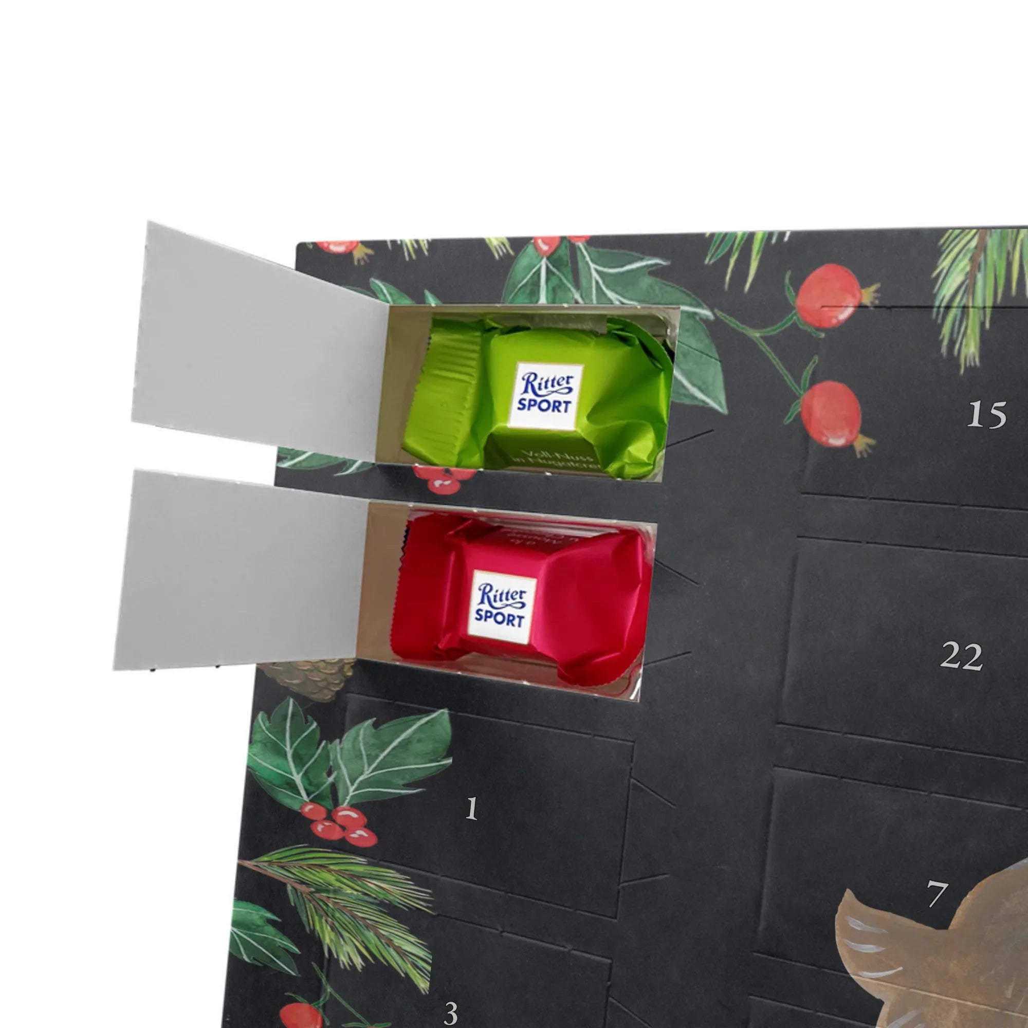 Adventskalender mit Schokolade – so schmeckt Vorfreude! Unser Mr. & Mrs. Panda Adventskalender ist liebevoll gestaltet und bedruckt mit wunderschönen Motiven & Sprüchen, die jeden Tag versüßen. Die brillante Druckqualität mit seidenmatter Oberflächenveredelung sorgt für ein edles Finish, und auch die Seitenflächen sind hübsch bedruckt. Der Kalender ist nicht personalisierbar, dafür aber vielseitig einsetzbar: Maße: 325 mm x 225 mm x 27 mm und die besondere Eigenschaft, dass du ihn aufgehängt oder aufgestellt verwenden kannst, geben dir Flexibilität bei der Dekoration. Gefüllt ist der Kalender mit Ritter Sport Schokowürfeln in beliebten Geschmacksrichtungen wie Mousse au Chocolat, Schoko Crisp, Voll-Nuss in Nougatcreme, Karamell Duo, Joghurt und Erdbeer-Joghurt. Wichtig: Es handelt sich um einen Kalender gefüllt mit Ritter Sport Schokolade, nicht um einen Kalender der Marke Ritter Sport. Ideal als Geschenk oder als Adventsdeko für dein Zuhause – kleine Schokofreuden warten hinter jedem Türchen.