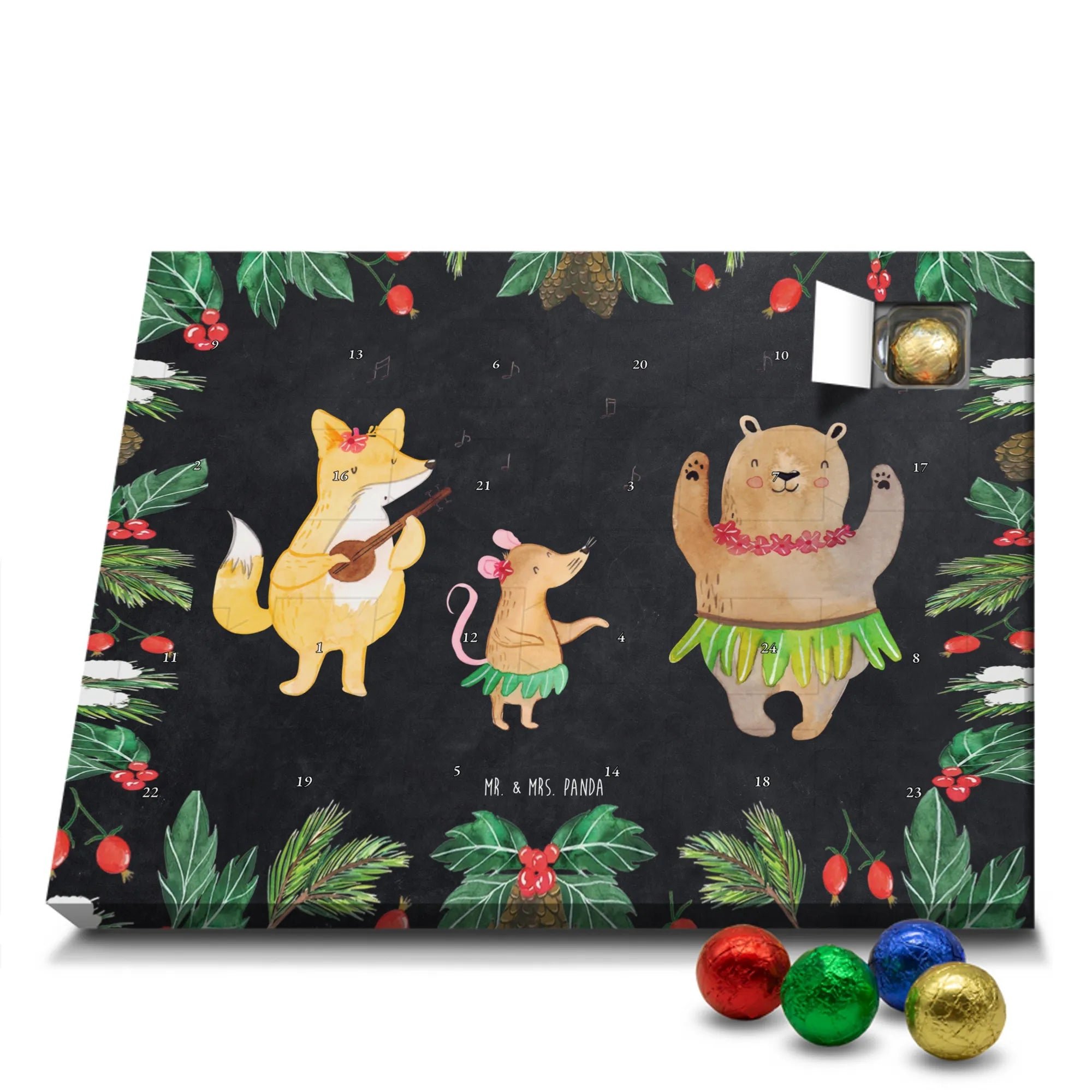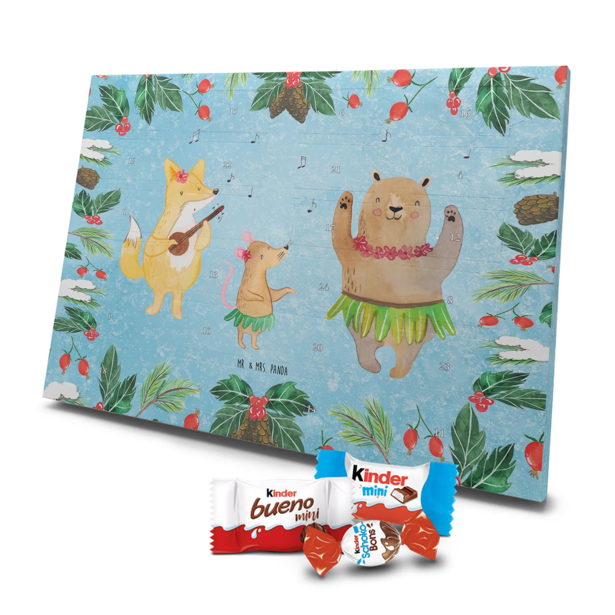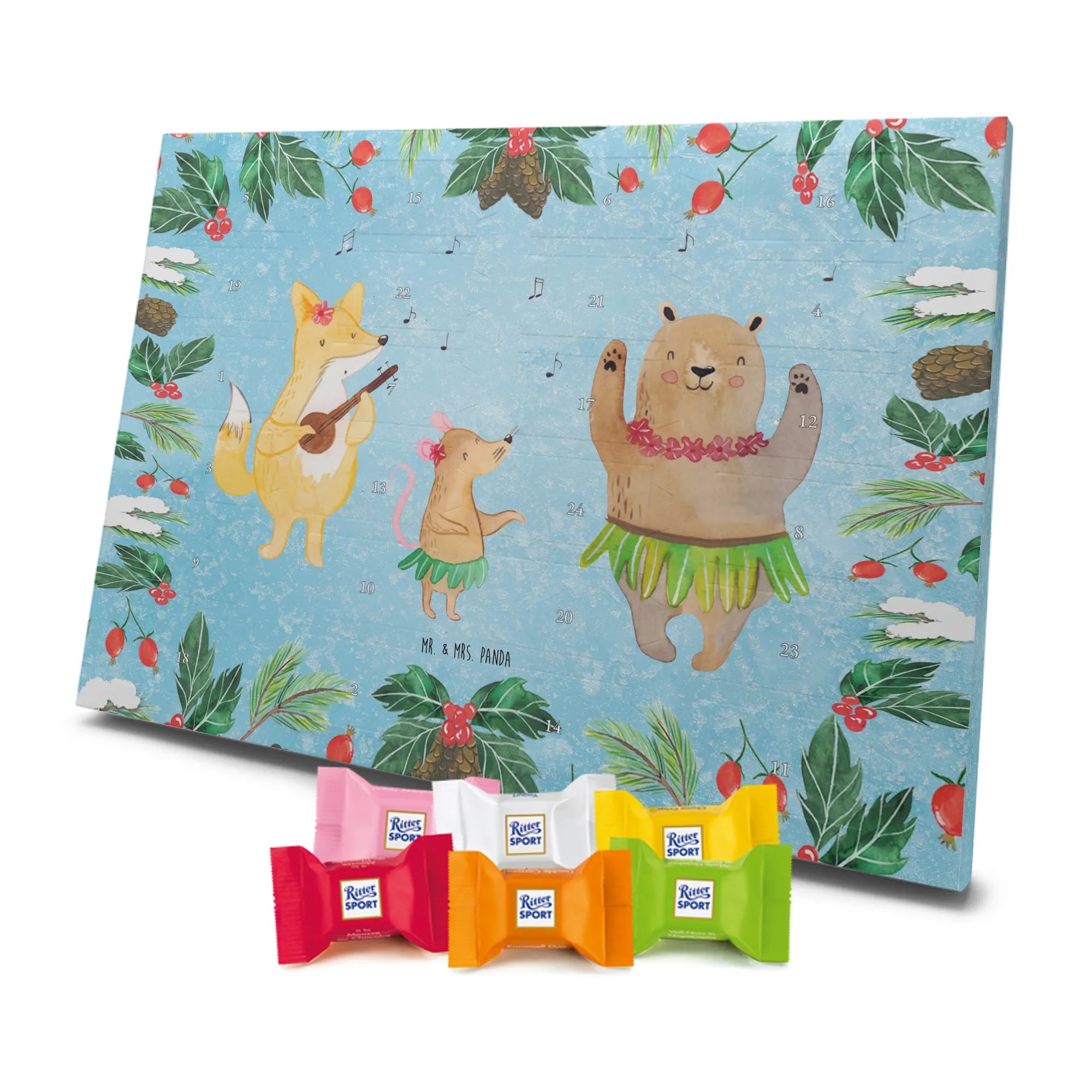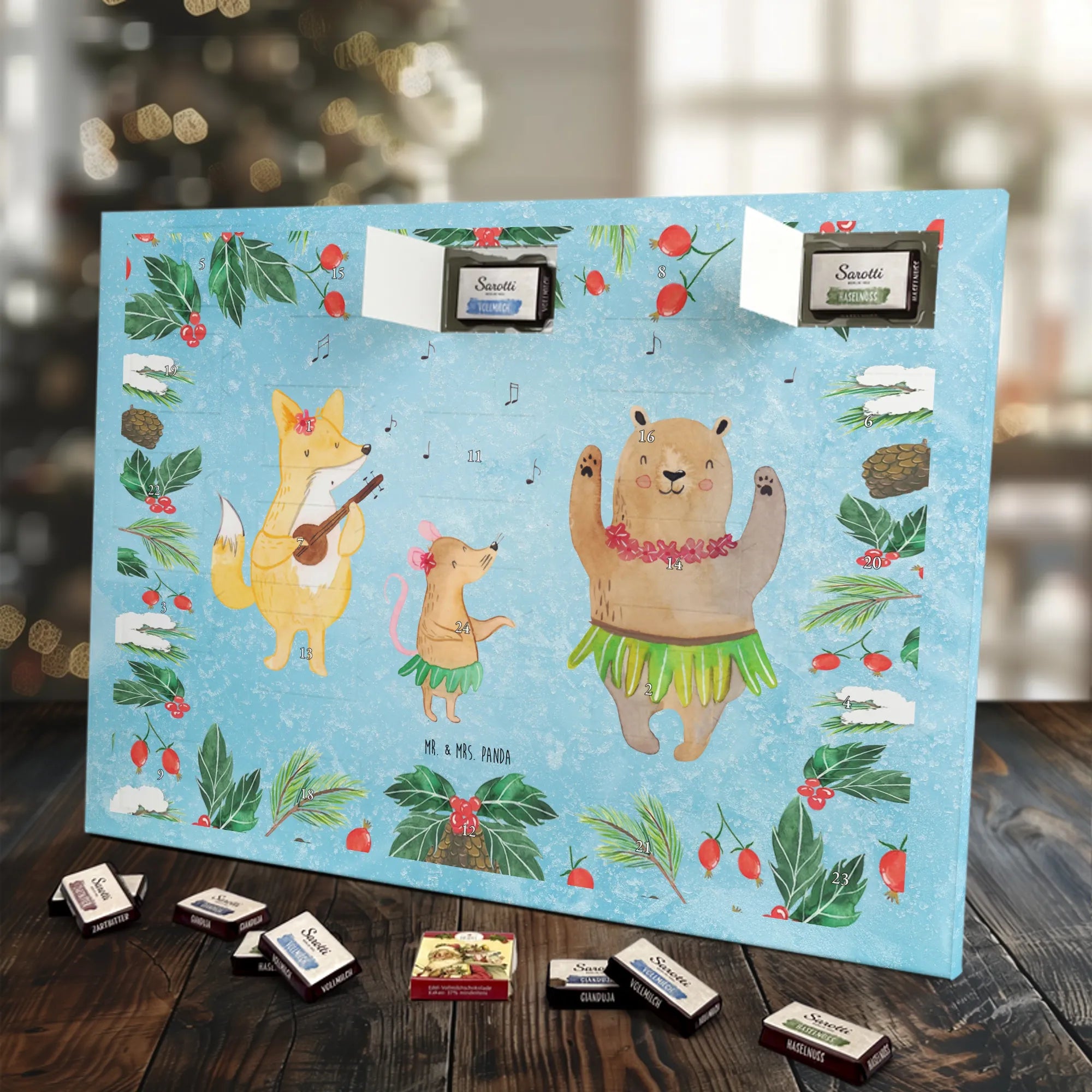 Mr. & Mrs. Panda Schoko Adventskalender Waldtiere Aloha – ein Adventskalender Schokolade, der Herz und Gaumen zugleich erfreut. Die niedlichen Waldbewohner in Hula-Röcken tanzen fröhlich unter dem Motto "Lebe. Tanze. Liebe. Lache." und machen den Countdown bis Weihnachten zu einem bunten Vergnügen. Dieser Weihnachtskalender Schoko verbindet liebevolle Illustrationen mit hochwertiger Druckqualität.