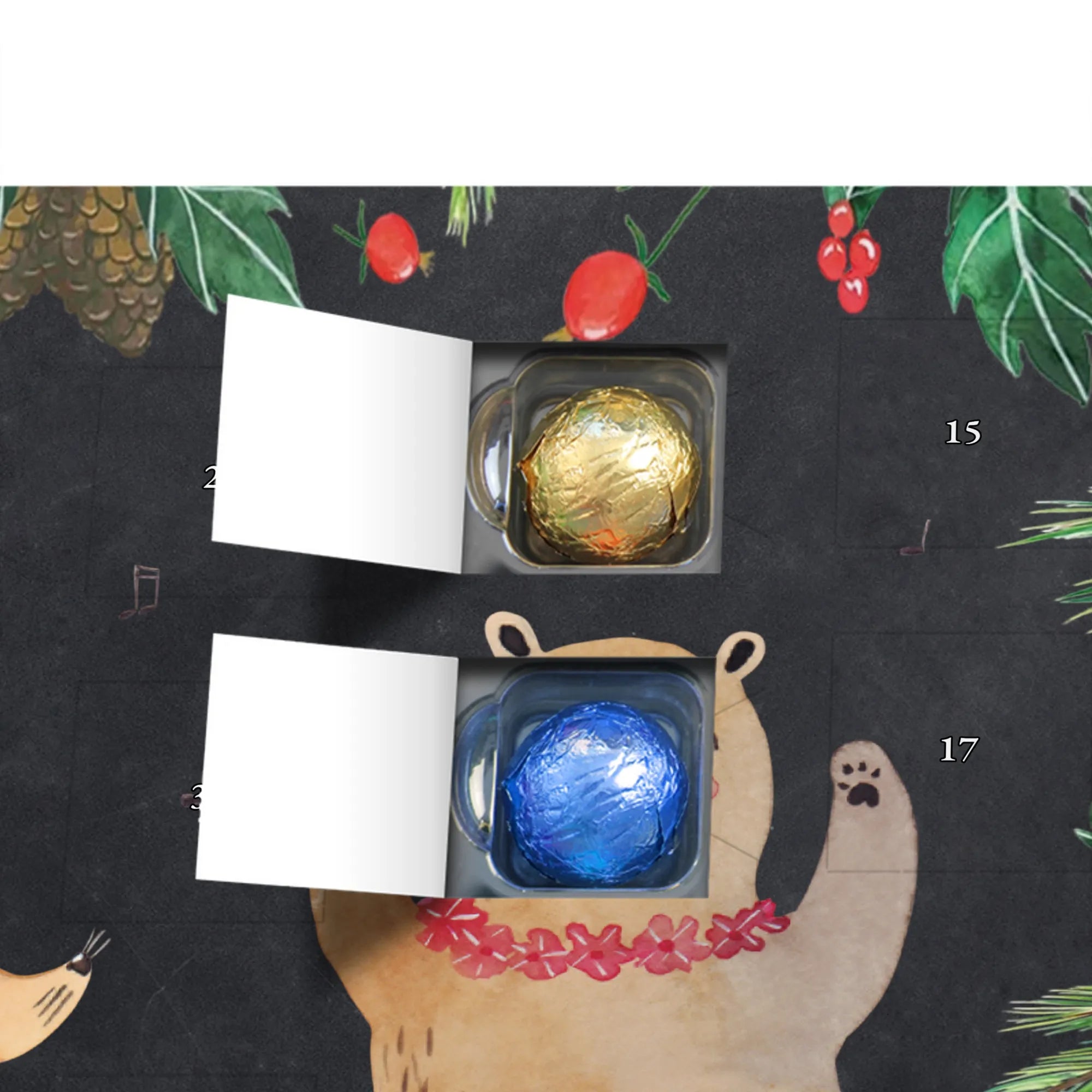 Besonderheiten: Bedruckte Seitenflächen, brillante Druckqualität, kann aufgehängt oder aufgestellt werden und ist nicht personalisierbar. Ein liebevoller Schokoladenkalender aus der Small World Kollektion von Mr. & Mrs. Panda.