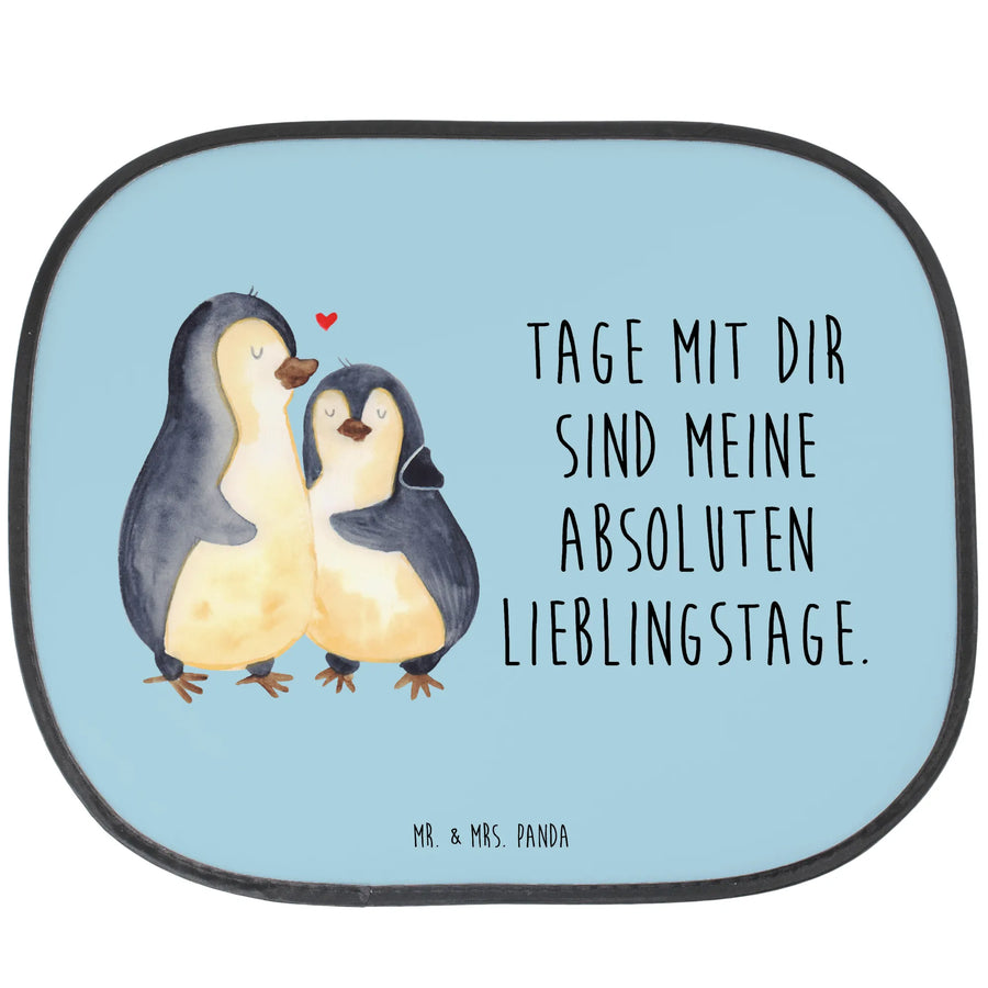 Der Auto Sonnenschutz mit dem liebevollen Motiv Pinguin umarmend aus der exklusiven Pinguin - Kollektion von Mr. & Mrs. Panda ist das perfekte Geschenk für kleine und große Familien, die viel Zeit im Auto verbringen.