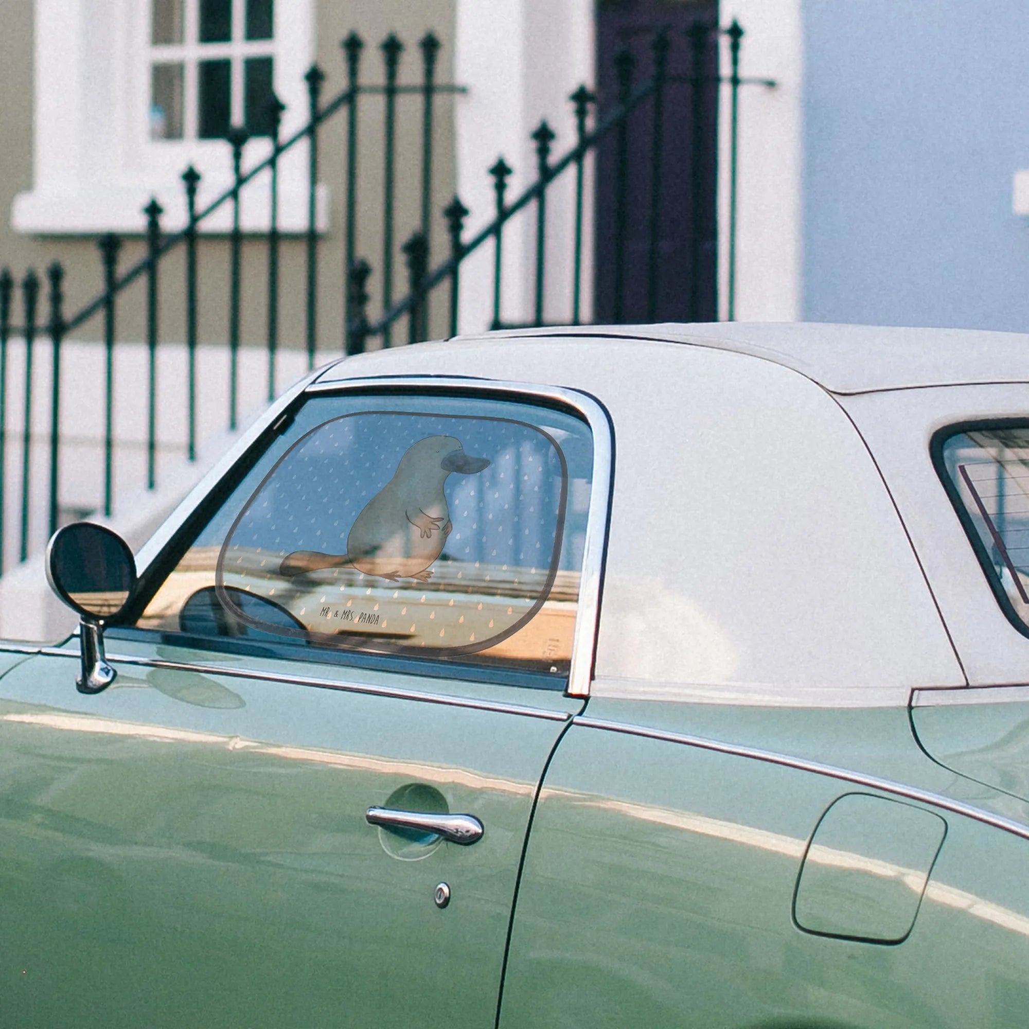 Entdecke den perfekten Auto Sonnenschutz von Mr. & Mrs. Panda! Mit dem charmanten Motiv des mutigen Schnabeltiers bist du nicht nur stilvoll unterwegs, sondern schützst auch dein Auto und deine kleinen Passagiere vor der gleißenden Sonne.