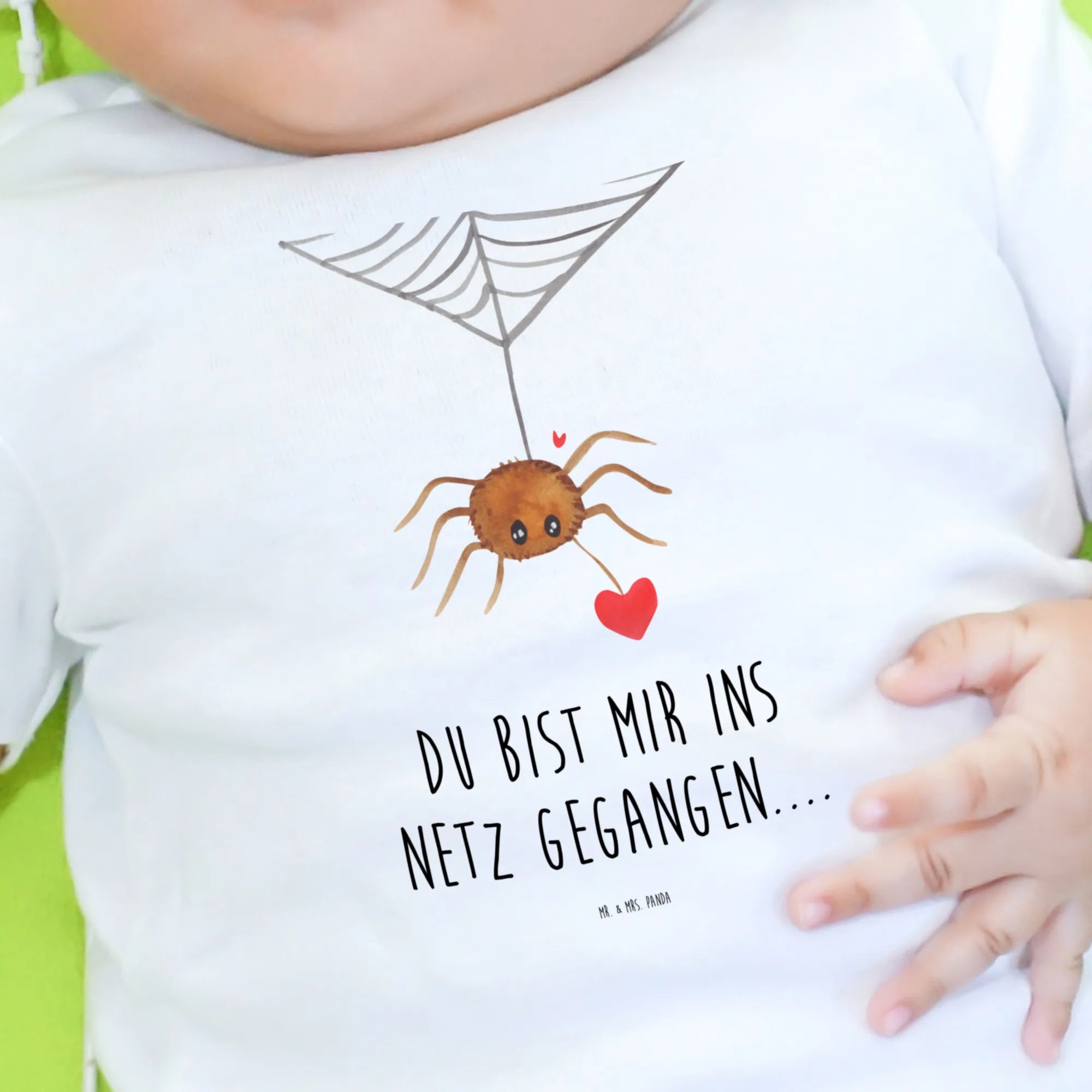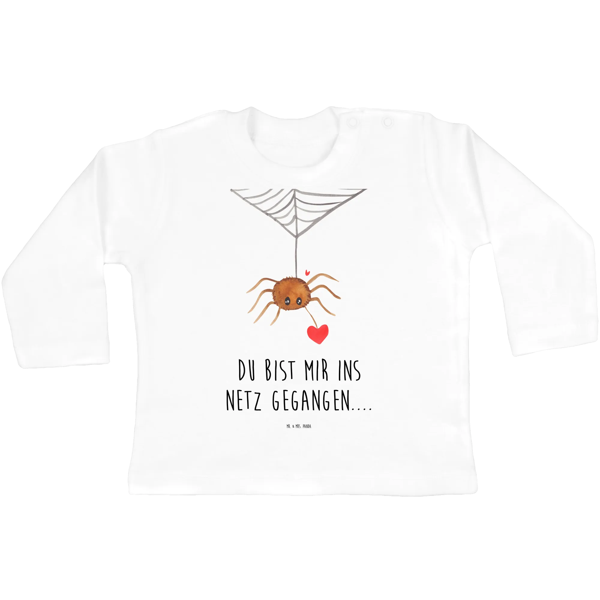 Mit dem Slogan 'Du bist mir ins Netz gegangen...' drückt das Longsleeve liebevoll aus, wie wichtig Du Deinem kleinen Liebling bist. Die Kollektion Spinne Agathe, die von Mrs. Panda inspiriert wurde, ist das Resultat einer bezaubernden Beziehung zu einer kleinen Spinne, die sie als Mascotte ausgewählt hat.