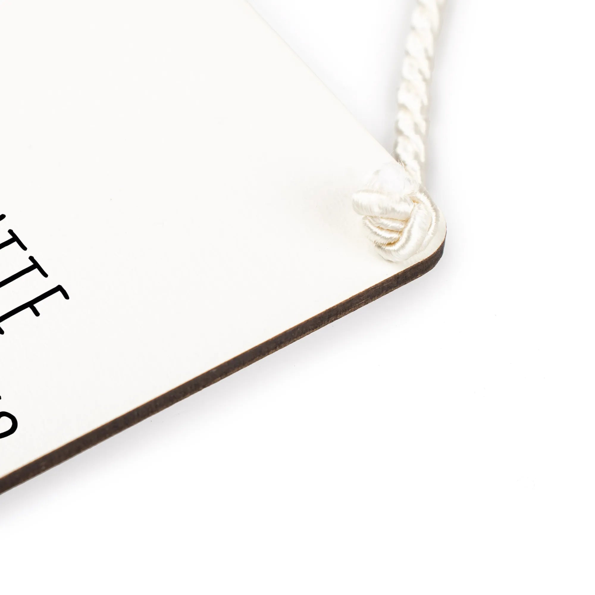 Die Oberfläche aus beschichteter Holzfaser sorgt dafür, dass das Schild langlebig und resistent gegen Abnutzung ist. Mit einer schicken Kordel kannst du das Schild ganz einfach aufhängen und es wird zum Blickfang in jedem Zuhause.