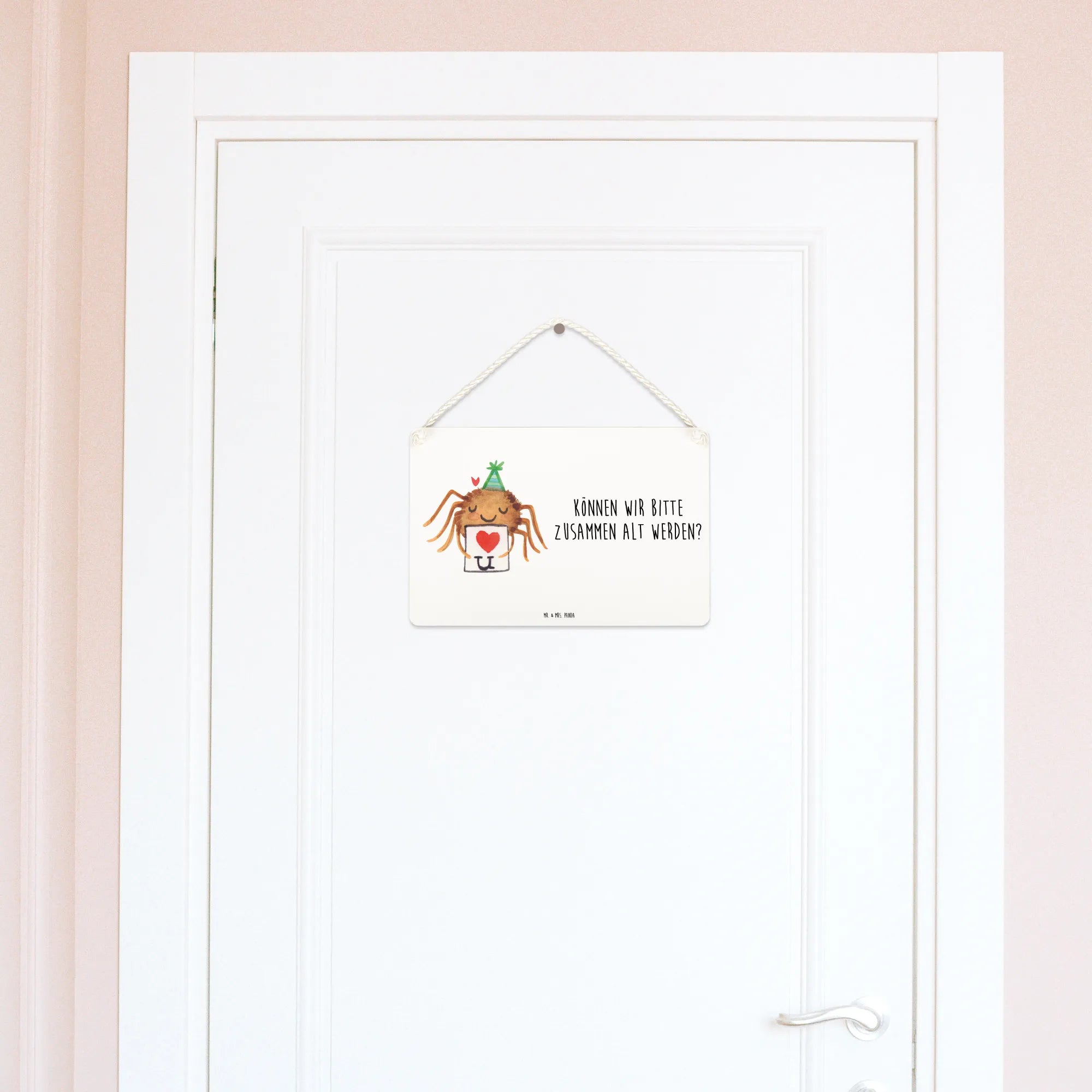 Entdecke das bezaubernde Deko Schild "Spinne Agathe Brief" von Mr. & Mrs. Panda, das Dein Zuhause mit einer Portion Liebe und Humor bereichert!