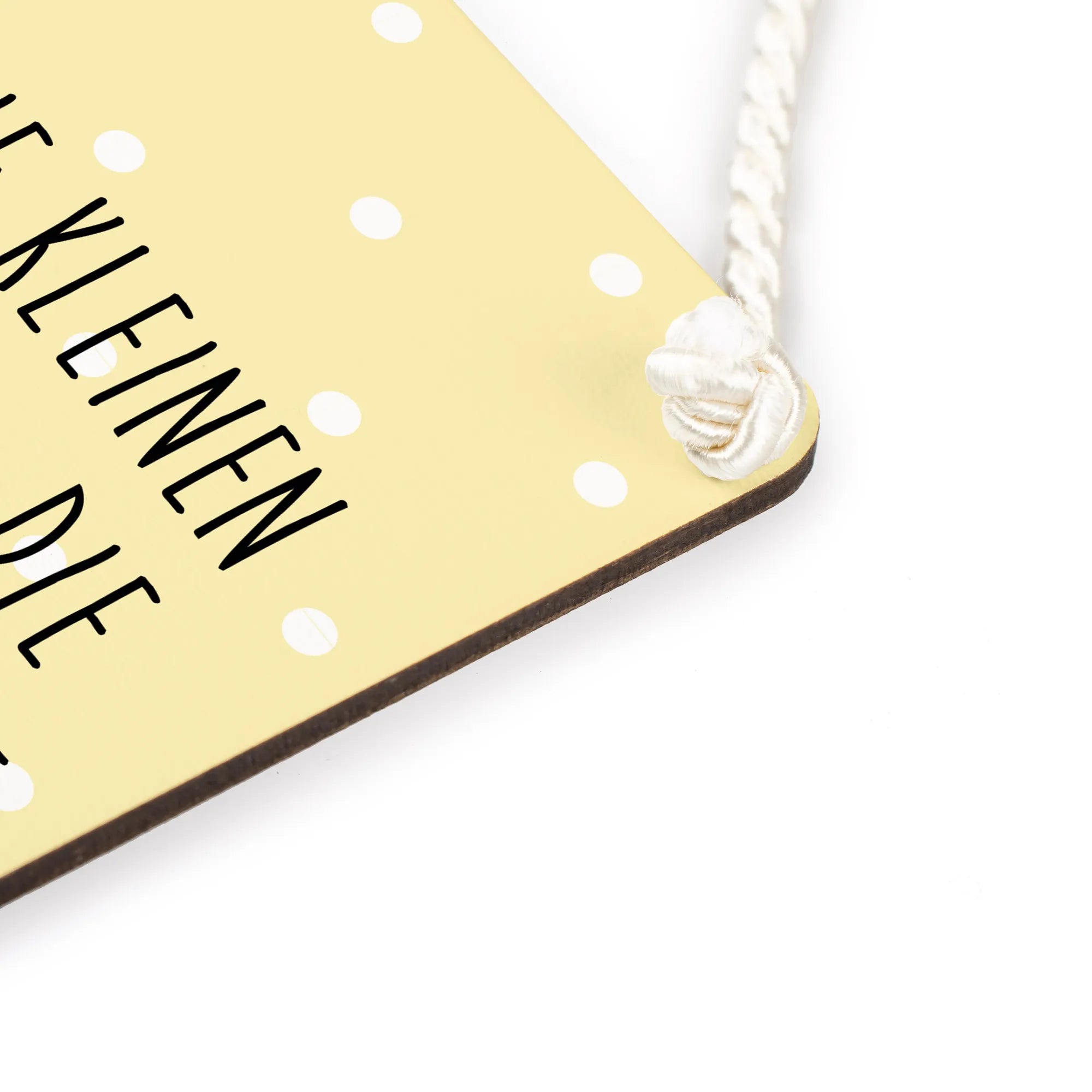 Der Spruch 'Es sind die kleinen Dinge im Leben, die das Leben lebenswert machen' erinnert uns daran, die kleinen Momente zu schätzen, und ist das perfekte Motto für jeden Tag. Die liebevolle Gestaltung und die hochwertige Verarbeitung des Materials - beschichtete Holzfaser - sorgen dafür, dass dieses Schild langlebig und stabil bleibt. Das Schild ist zudem mit einer wunderschönen, gedrehten Kordel ausgestattet, so dass es leicht aufzuhängen ist.
