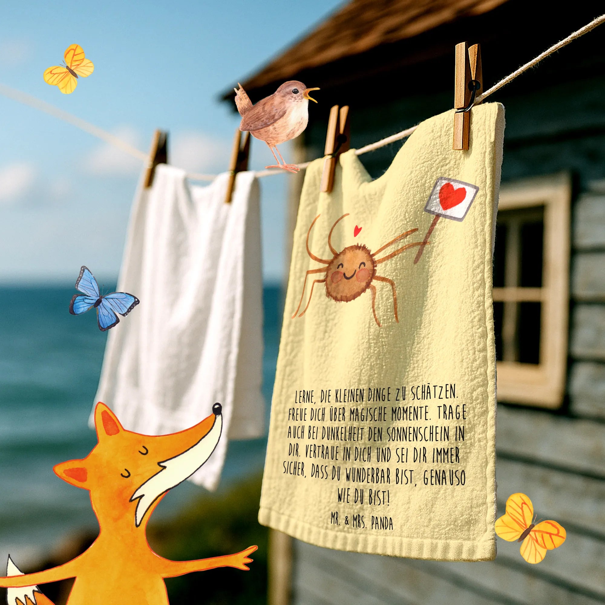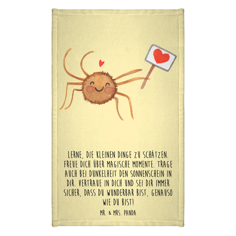 Gästehandtuch Spinne Agathe Motivation - mit Spruch - Gelb Pastell
