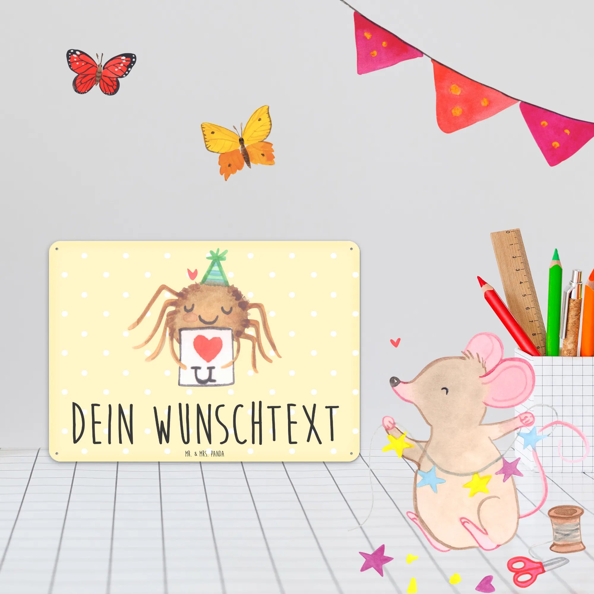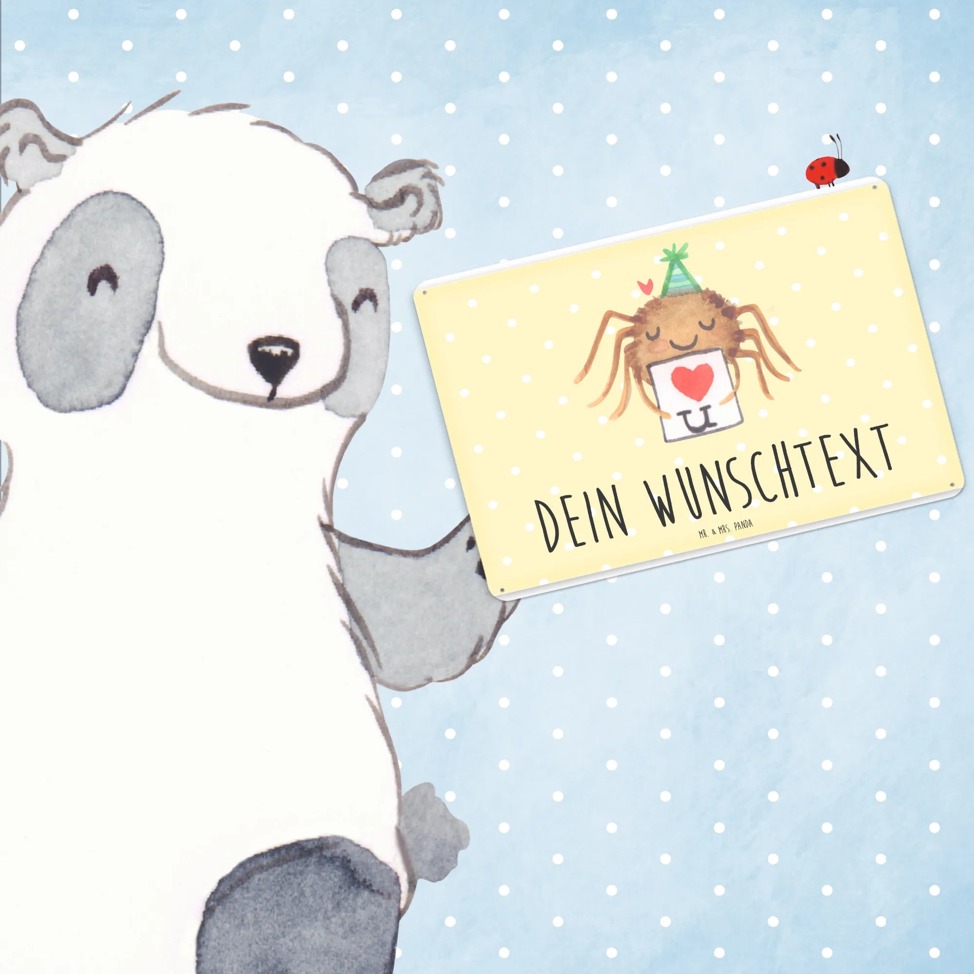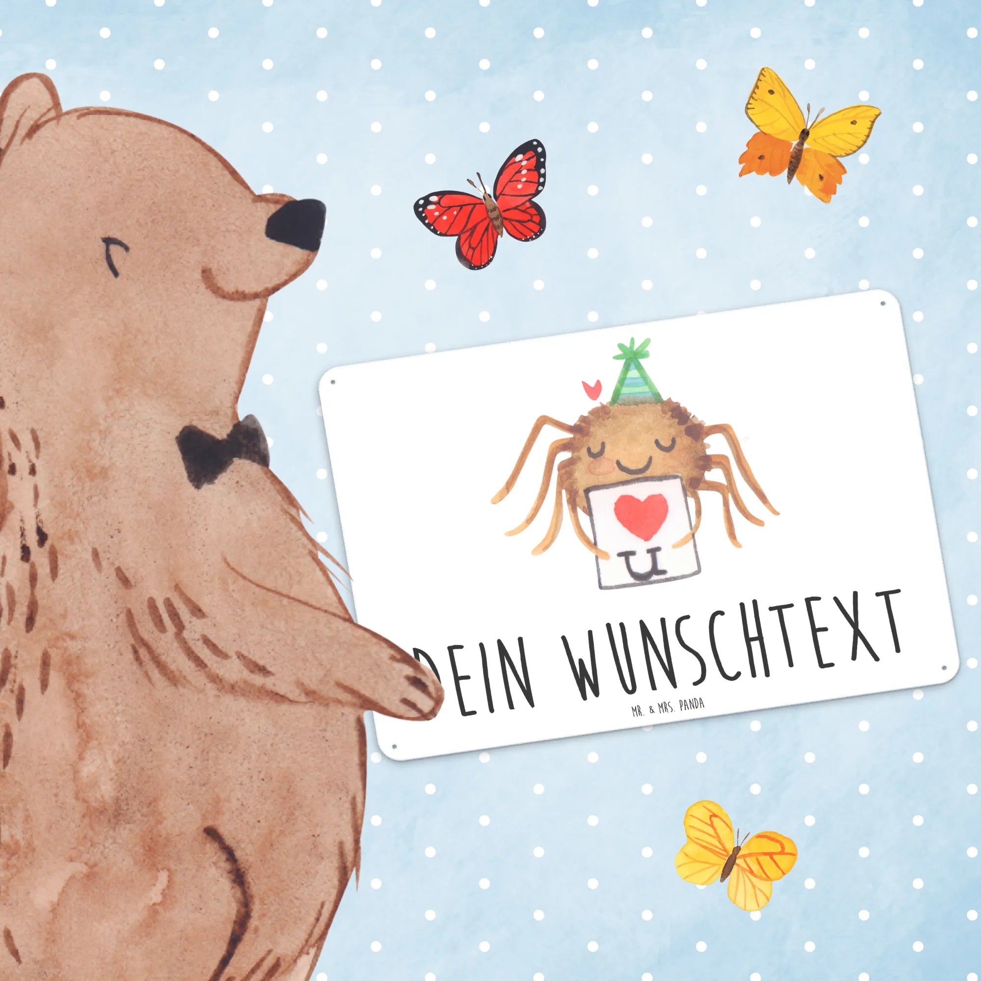 Erlebe ein Stückchen Liebe mit unserem personalisierten Blechschild aus der bezaubernden Spinne Agathe Kollektion von Mr. & Mrs. Panda! Dieses wunderbar gestaltete Schild zeigt die niedliche Spinne Agathe, die einen süßen Brief in ihren Ärmchen hält, verziert mit einem kleinen Herzchen – ein wahrer Liebesbeweis!