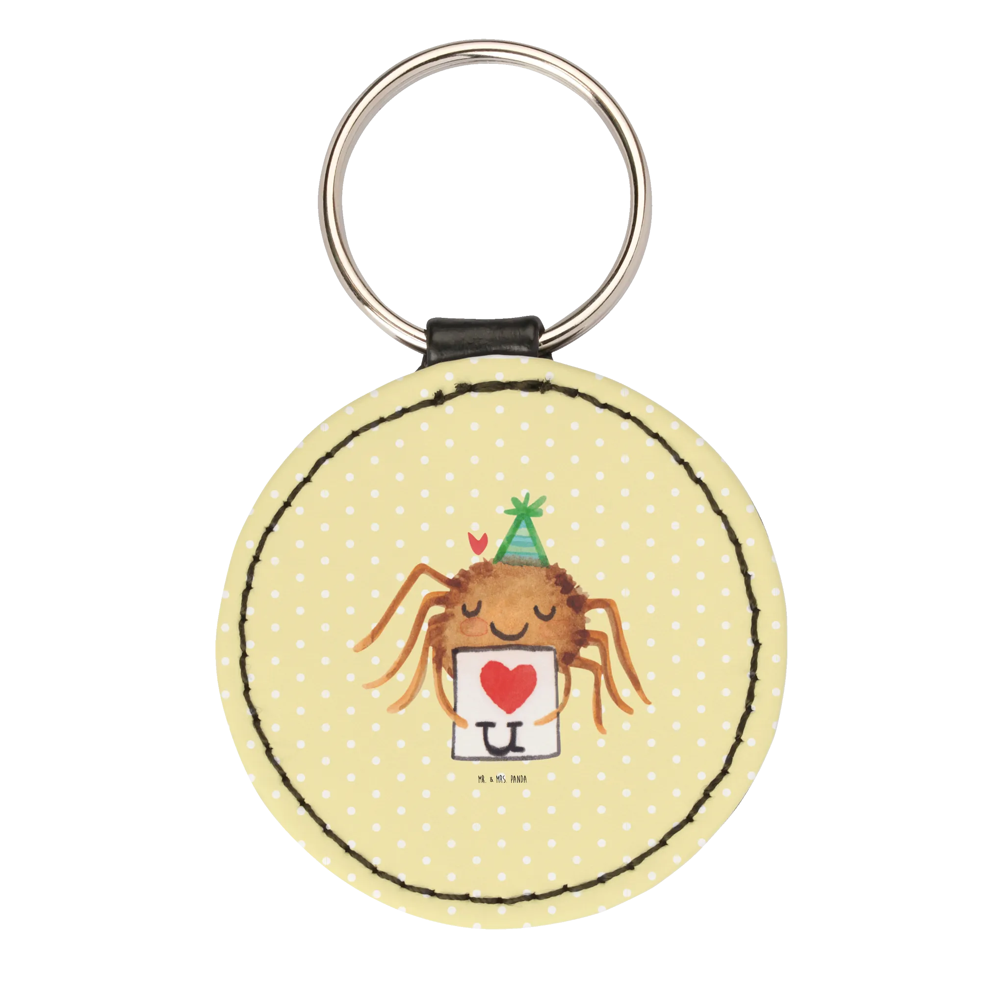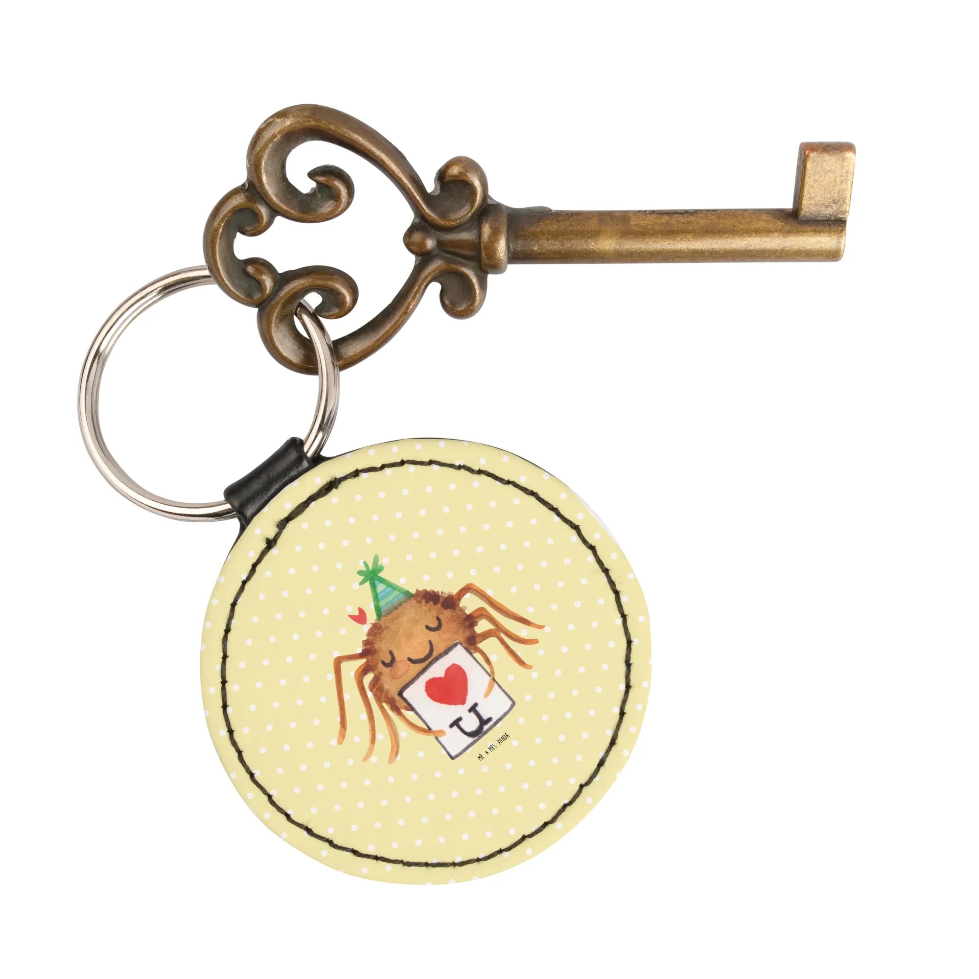 Rund Schlüsselanhänger Spinne Agathe Brief - Gelb Pastell