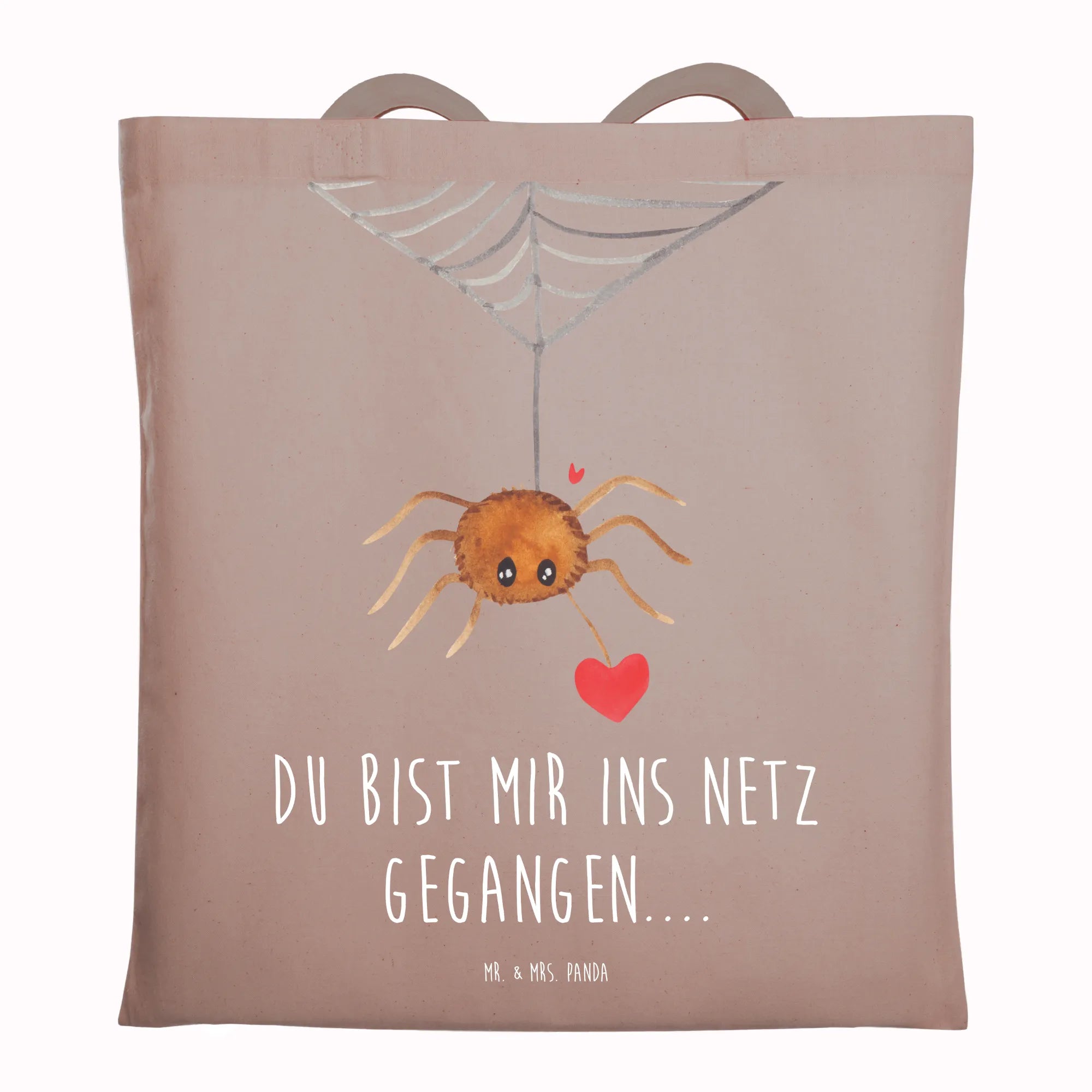 Bist Du auf der Suche nach dem perfekten Geschenk für Deine Liebsten? Unsere Tragetasche mit dem Motiv 'Spinne Agathe Liebe' aus der einzigartigen Kollektion 'Spinne Agathe' von Mr. & Mrs. Panda ist die Antwort!