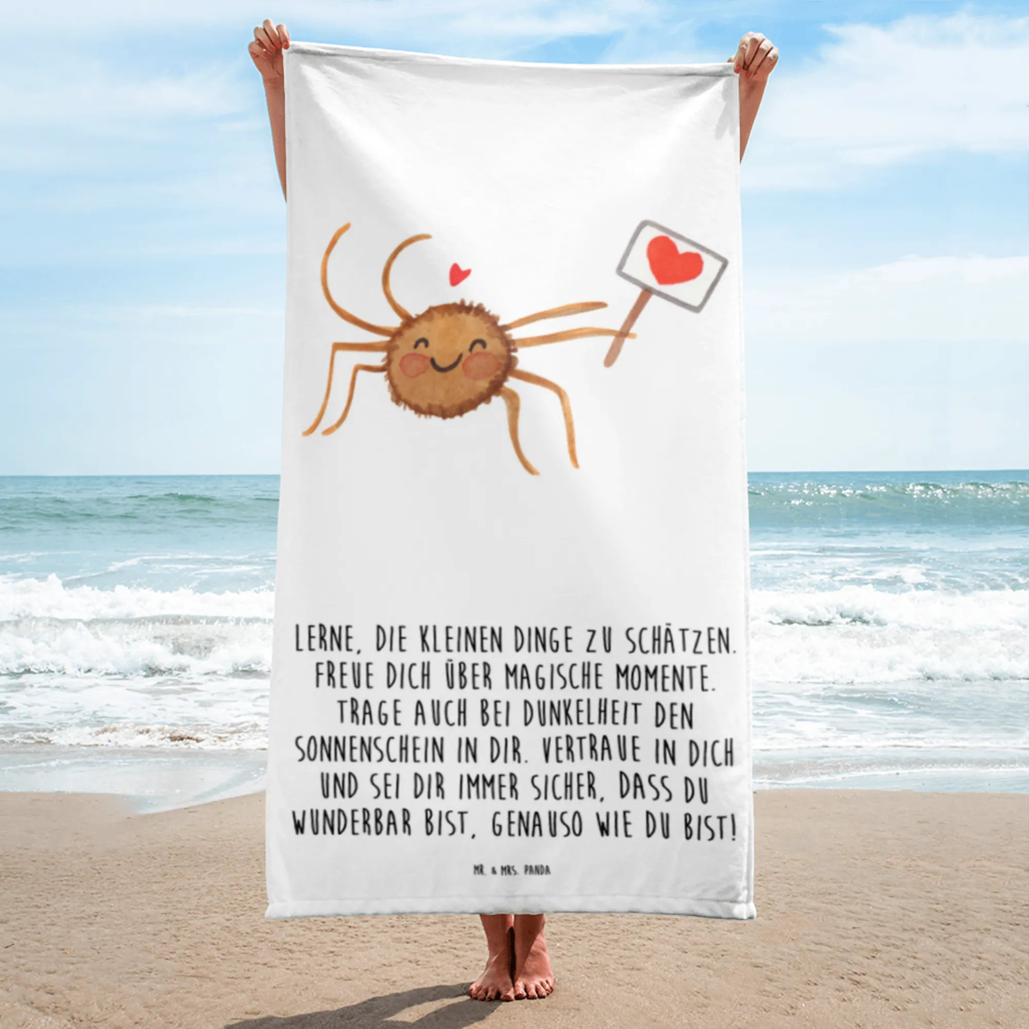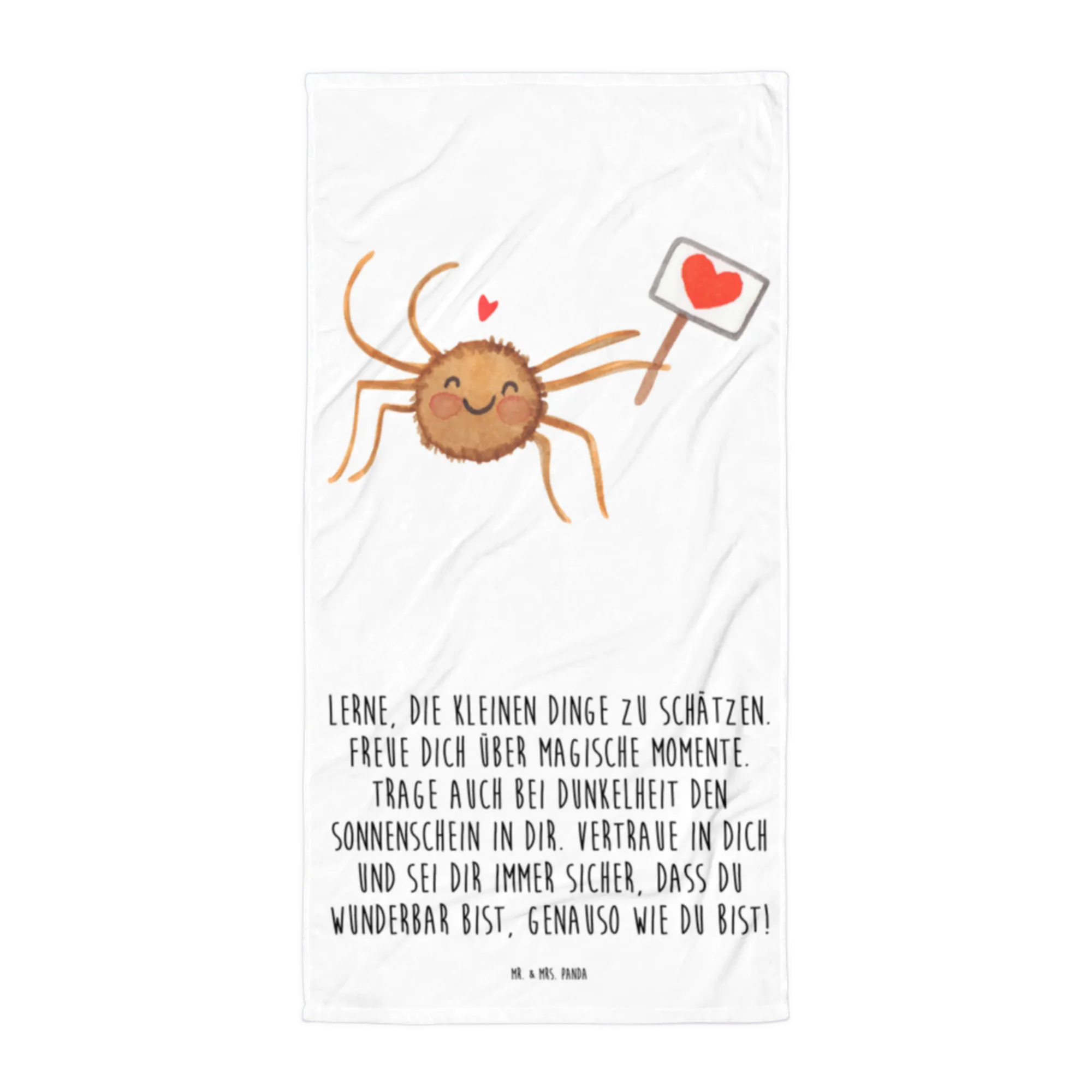 Das XL Badehandtuch mit dem bezaubernden Motiv 'Spinne Agathe Motivation' von Mr. & Mrs. Panda ist der perfekte Begleiter für all deine Abenteuer – egal ob am Strand, im Schwimmbad oder in der Sauna.