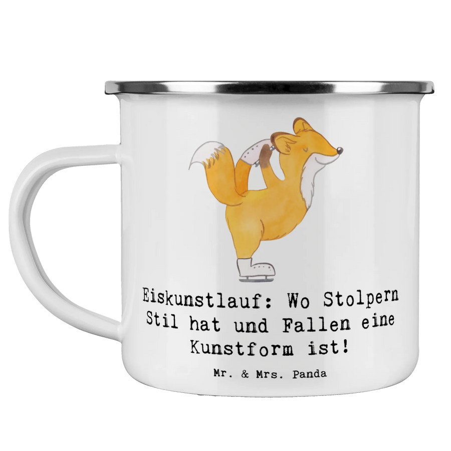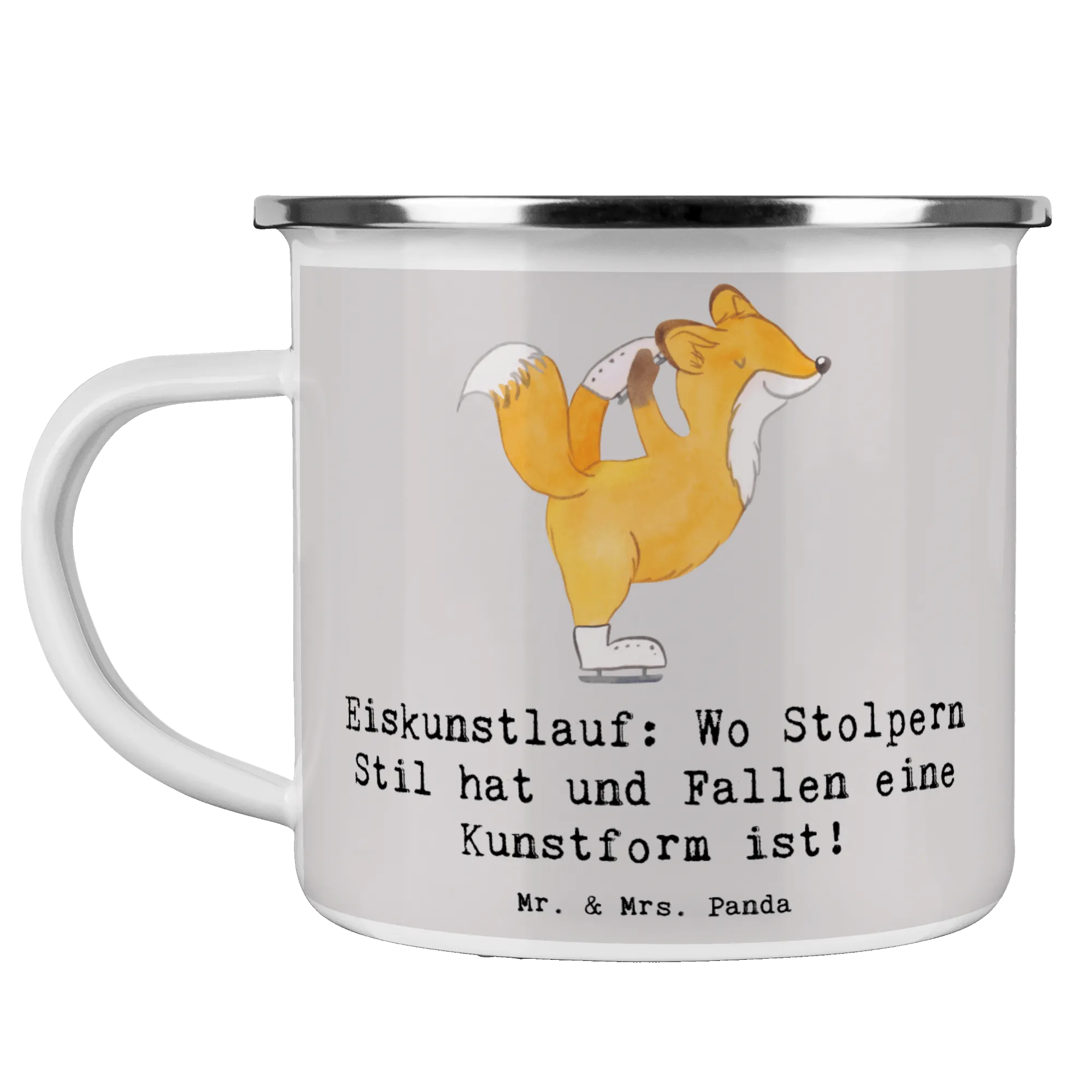 Die Camping Emaille Tasse mit dem einzigartigen Motiv "Eiskunstlauf" von Mr. & Mrs. Panda ist das ideale Geschenk für alle Sportbegeisterten und Liebhaber des Eiskunstlaufs.