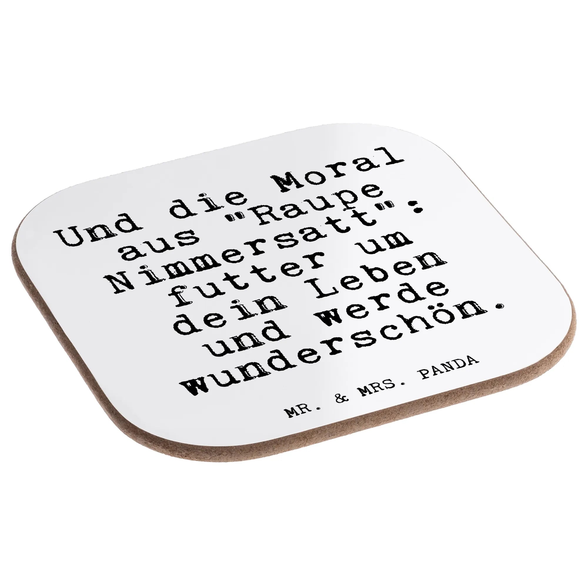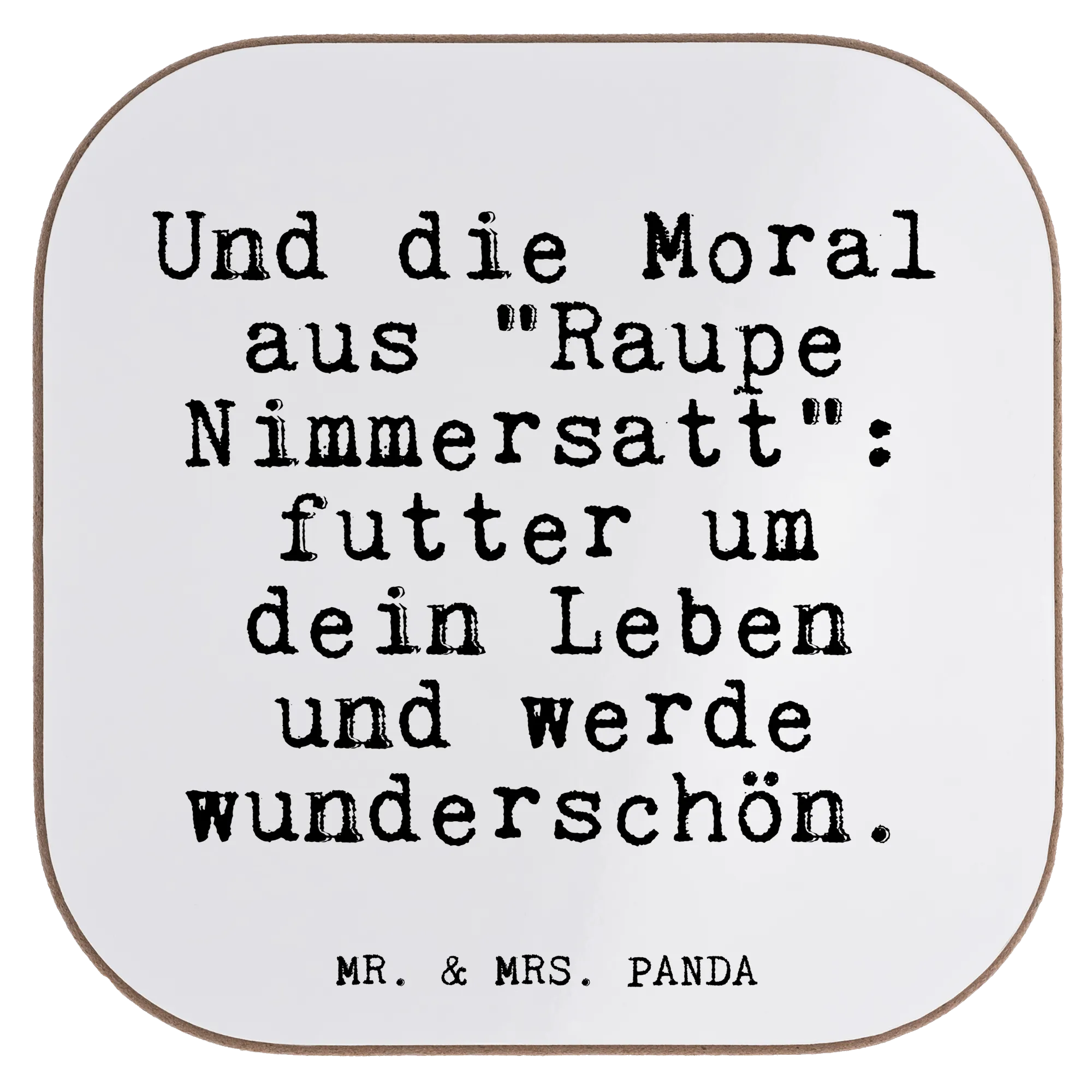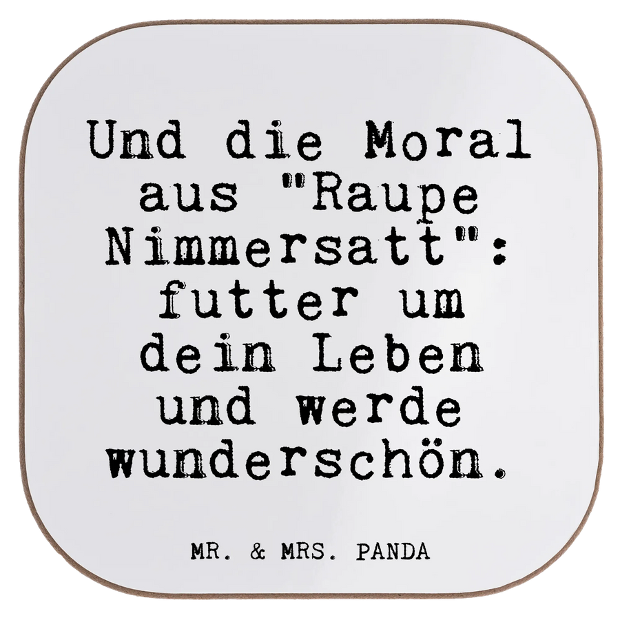 Quadratische Untersetzer Fun Talk Und die Moral aus "Raupe Nimmersatt": futter um dein Leben und werde wunderschön.