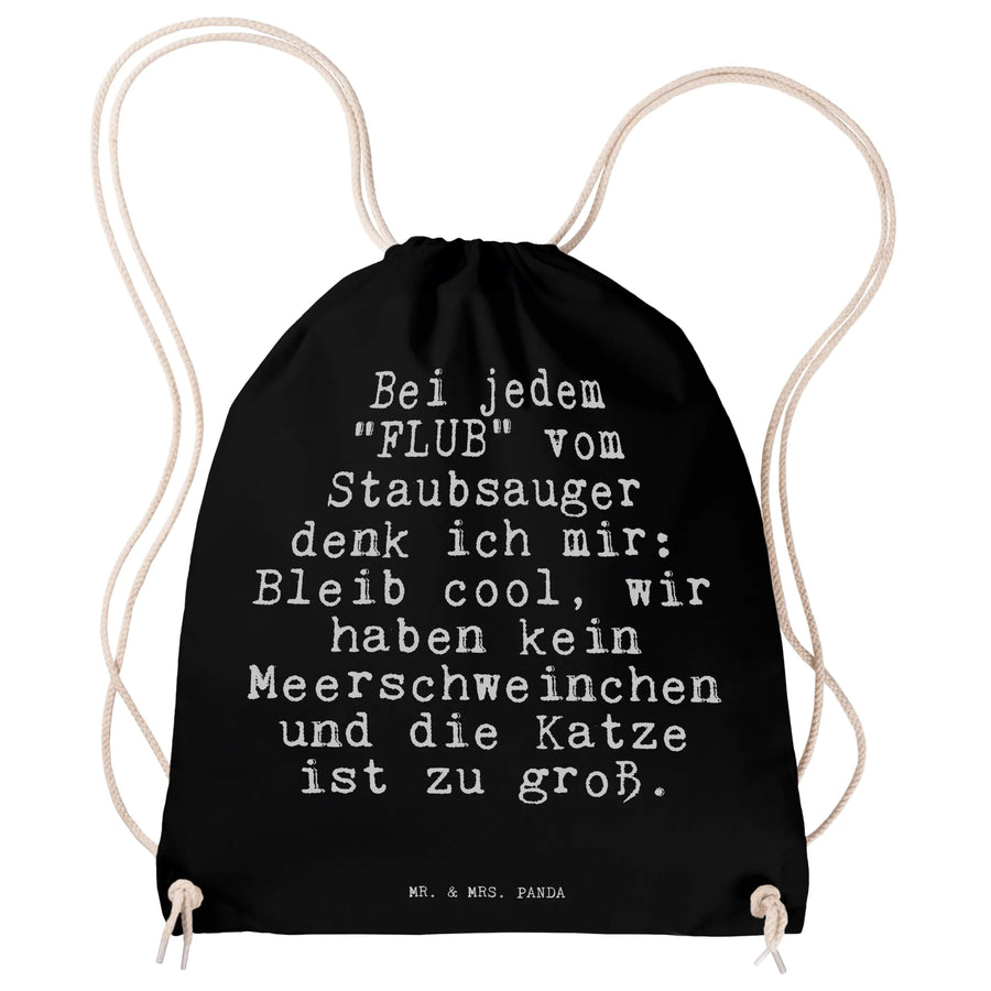 Sportbeutel Sprüche und Zitate Bei jedem "FLUB" vom Staubsauger denk ich mir: Bleib cool, wir haben kein Meerschweinchen und die Katze ist zu groß. - Schwarz