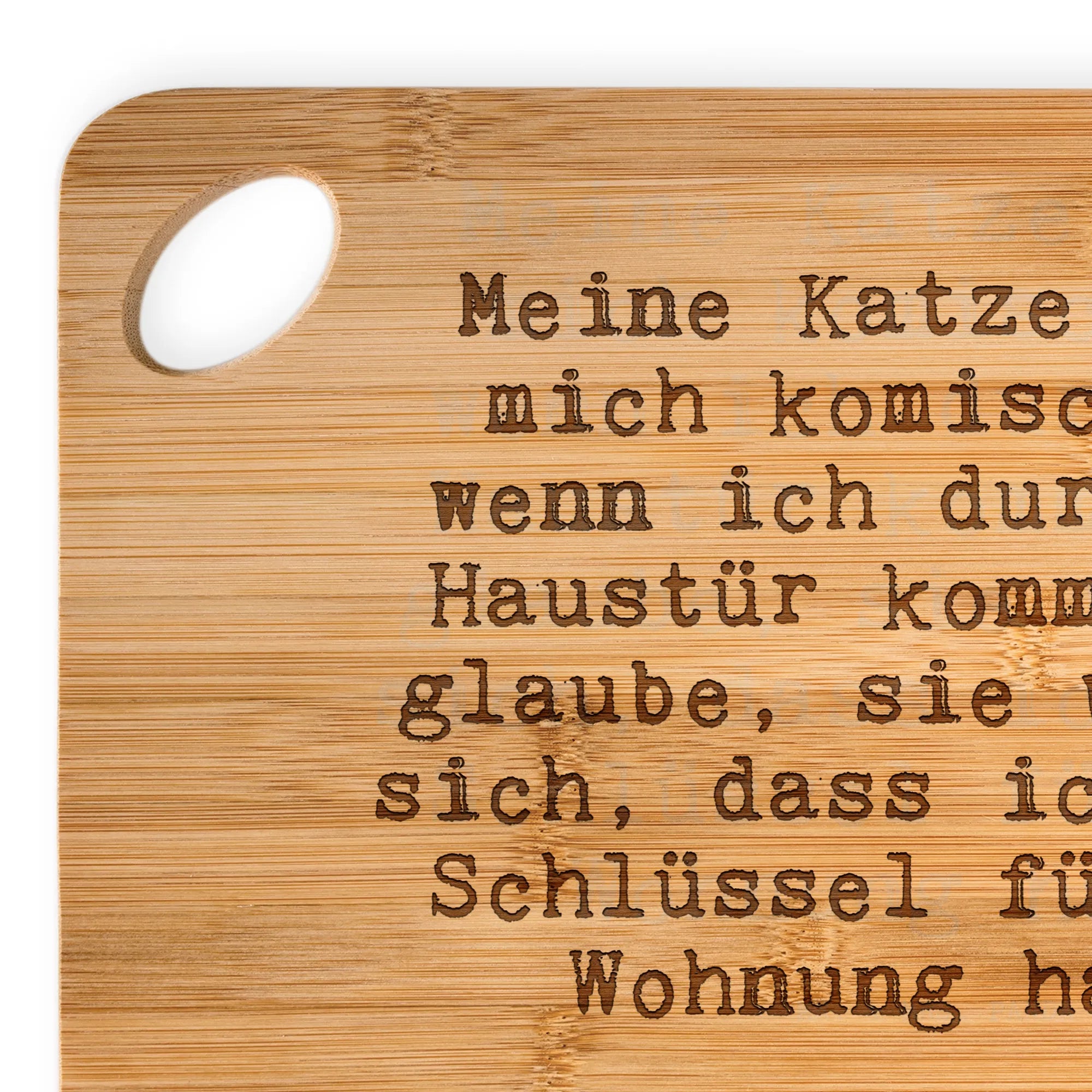 Suchst du nach dem perfekten Geschenk für einen Katzenliebhaber? Dann ist unser einzigartiges Bambus-Schneidebrett mit dem liebevollen Spruch "Meine Katze guckt mich komisch an, wenn ich durch die Haustür komme. Ich glaube, sie wundert sich, dass ich einen Schlüssel für ihre Wohnung habe." genau das Richtige!
