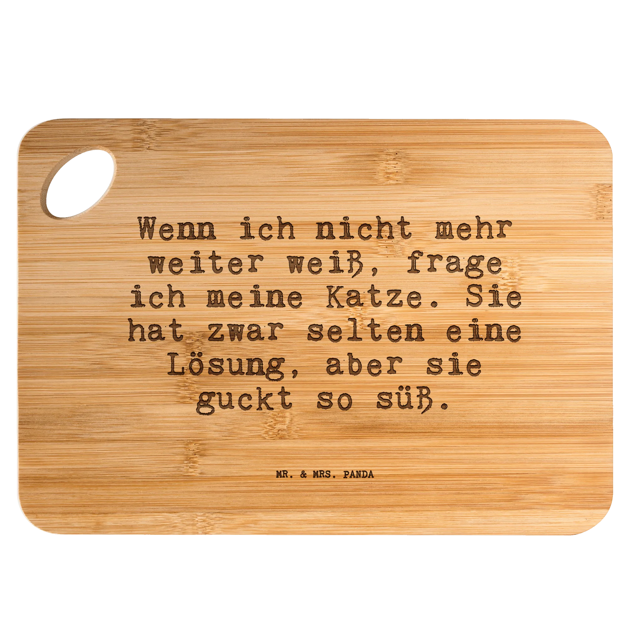Das Bambus-Schneidebrett von Mr. & Mrs. Panda ist das perfekte Geschenk für alle Katzenliebhaber und wird garantiert jedem ein Lächeln ins Gesicht zaubern! Mit dem liebevollen Spruch "Wenn ich nicht mehr weiter weiß, frage ich meine Katze. Sie hat zwar selten eine Lösung, aber sie guckt so süß." ist dieses Küchenbrett nicht nur funktional, sondern auch ein echter Hingucker in der Küche.