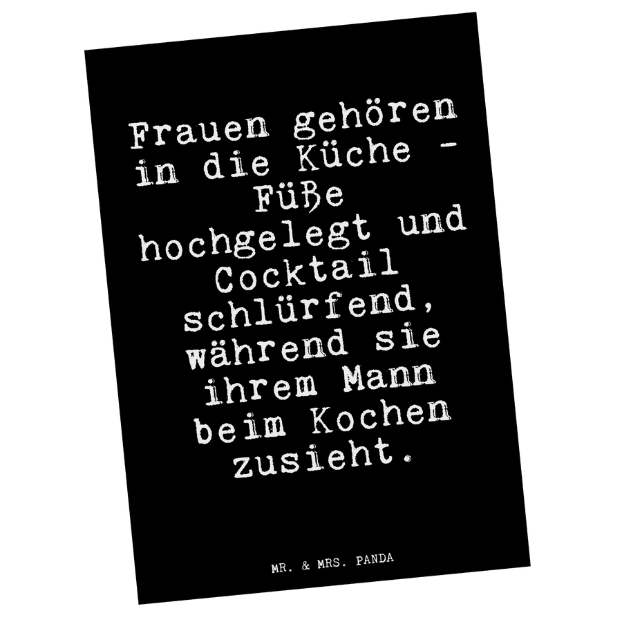 Die einzigartige Postkarte von Mr. & Mrs. Panda ist das perfekte Geschenk für zahlreiche Anlässe, sei es ein Hochzeitstag, die Verlobung, ein Junggesellinnenabschied oder einfach als humorvolle Geste für einen lieben Menschen. Mit dem witzigen Spruch "Frauen gehören in die Küche - Füße hochgelegt und Cocktail schlürfend, während sie ihrem Mann beim Kochen zusieht." zaubert diese Karte ein Lächeln ins Gesicht und sorgt für gute Laune.