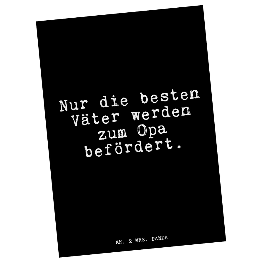 Diese einzigartige Postkarte von Mr. & Mrs. Panda verbreitet Freude und Herzlichkeit. Sie trägt den liebevollen Spruch 'Nur die besten Väter werden zum Opa befördert.' und bringt jeden zum Schmunzeln! Diese Karte ist perfekt für alle Anlässe, sei es ein Geburtstag, eine Hochzeit oder einfach nur zur Aufmunterung eines lieben Menschen.
