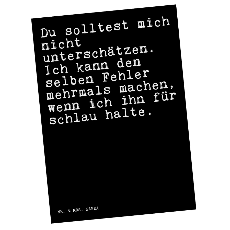 Postkarte Sprüche und Zitate Du solltest mich nicht unterschätzen. Ich kann den selben Fehler mehrmals machen, wenn ich ihn für schlau halte. - Schwarz