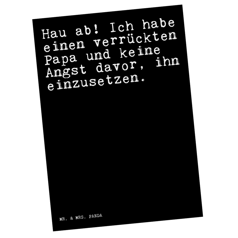 Postkarte Sprüche und Zitate Hau ab! Ich habe einen verrückten Papa und keine Angst davor, ihn einzusetzen. - Schwarz