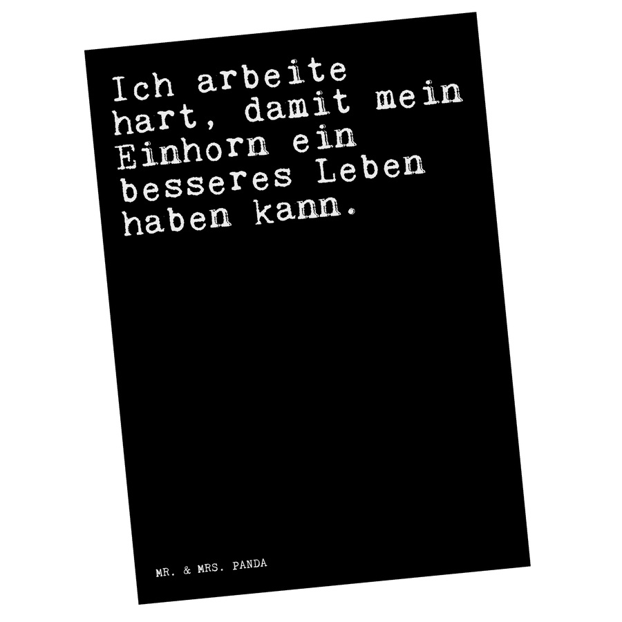 Postkarte Sprüche und Zitate Ich arbeite hart, damit mein Einhorn ein besseres Leben haben kann. - Schwarz