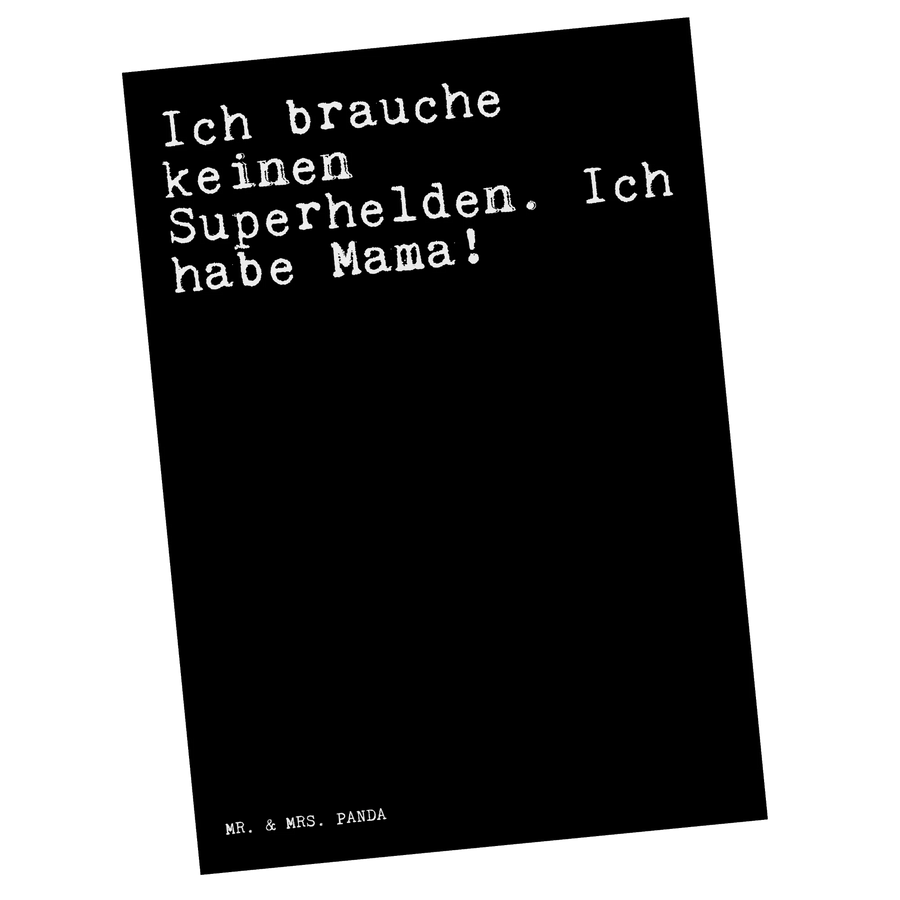 Postkarte Sprüche und Zitate Ich brauche keinen Superhelden. Ich habe Mama! - Schwarz