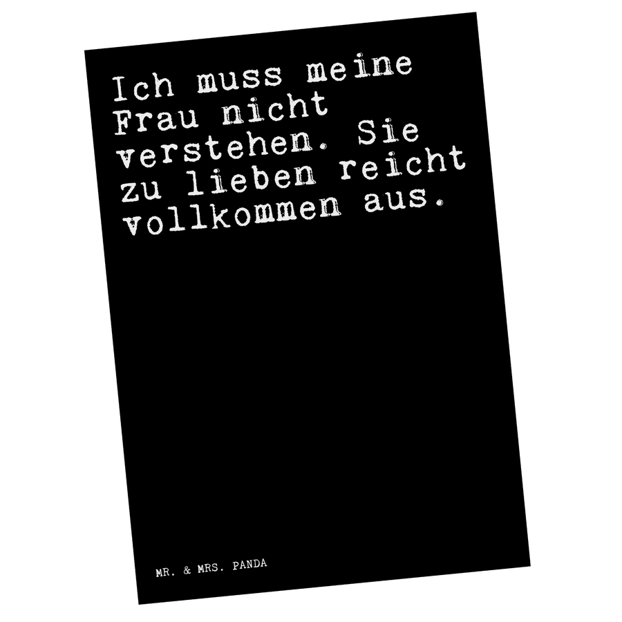 Postkarte Sprüche und Zitate Ich muss meine Frau nicht verstehen. Sie zu lieben reicht vollkommen aus. - Schwarz