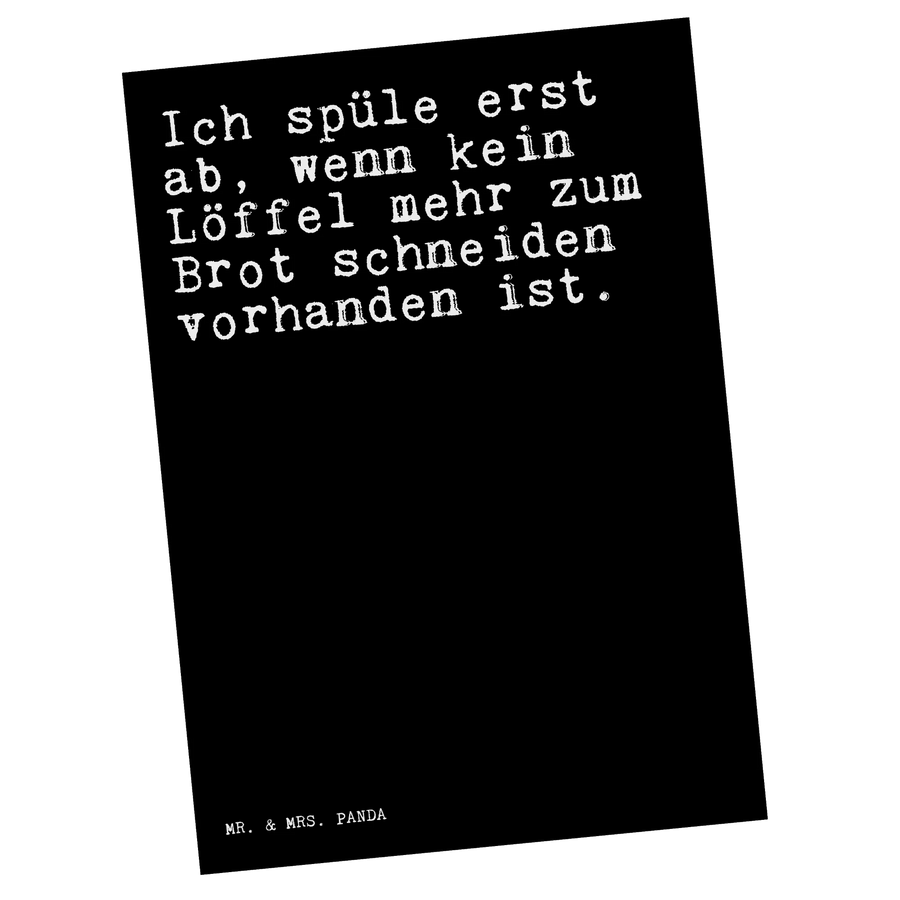 Postkarte Sprüche und Zitate Ich spüle erst ab, wenn kein Löffel mehr zum Brot schneiden vorhanden ist. - Schwarz