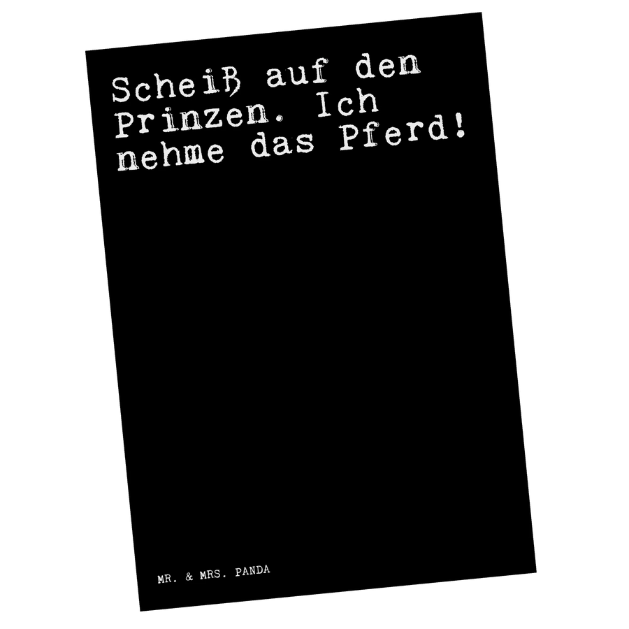 Postkarte Sprüche und Zitate Scheiß auf den Prinzen. Ich nehme das Pferd! - Schwarz